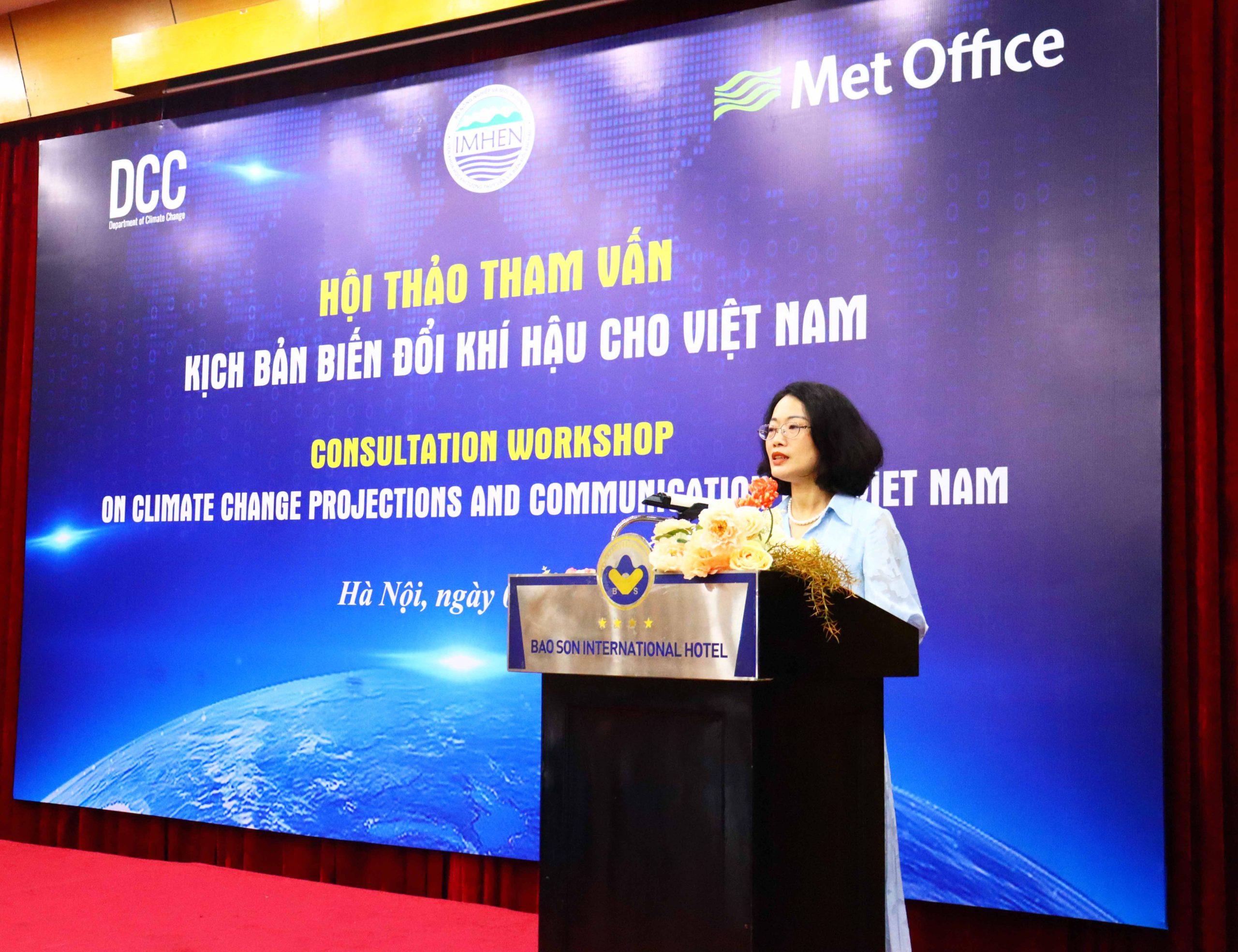 Theo bà, dữ liệu và thông tin về biến đổi khí hậu có thể được chia sẻ dưới nhiều hình thức khác nhau như: Briefing note (bản ghi chú tóm tắt), Climate information packs (gói thông tin khí hậu), Sector-specific packs (gói thông tin theo từng lĩnh vực), Storylines (câu chuyện hóa thông tin khí hậu) – một hình thức kể chuyện dựa trên dữ liệu, giúp truyền tải tác động khí hậu theo bối cảnh thực tế, dễ tiếp cận hơn cho người dân và nhà hoạch định chính sách. Thông qua kết quả tham vấn, Cơ quan khí tượng Anh sẽ hỗ trợ Việt Nam áp dụng nguyên tắc “đồng thiết kế – đồng sản xuất – đồng truyền đạt” thông tin khí hậu để truyền thông về kịch bản BĐKH trong tương lai. Đây là cách tiếp cận nhằm kết nối chặt chẽ giữa các nhà khoa học, nhà hoạch định chính sách và cộng đồng người sử dụng, từ đó đảm bảo thông tin khí hậu được cung cấp phù hợp, dễ hiểu và có thể hành động được.