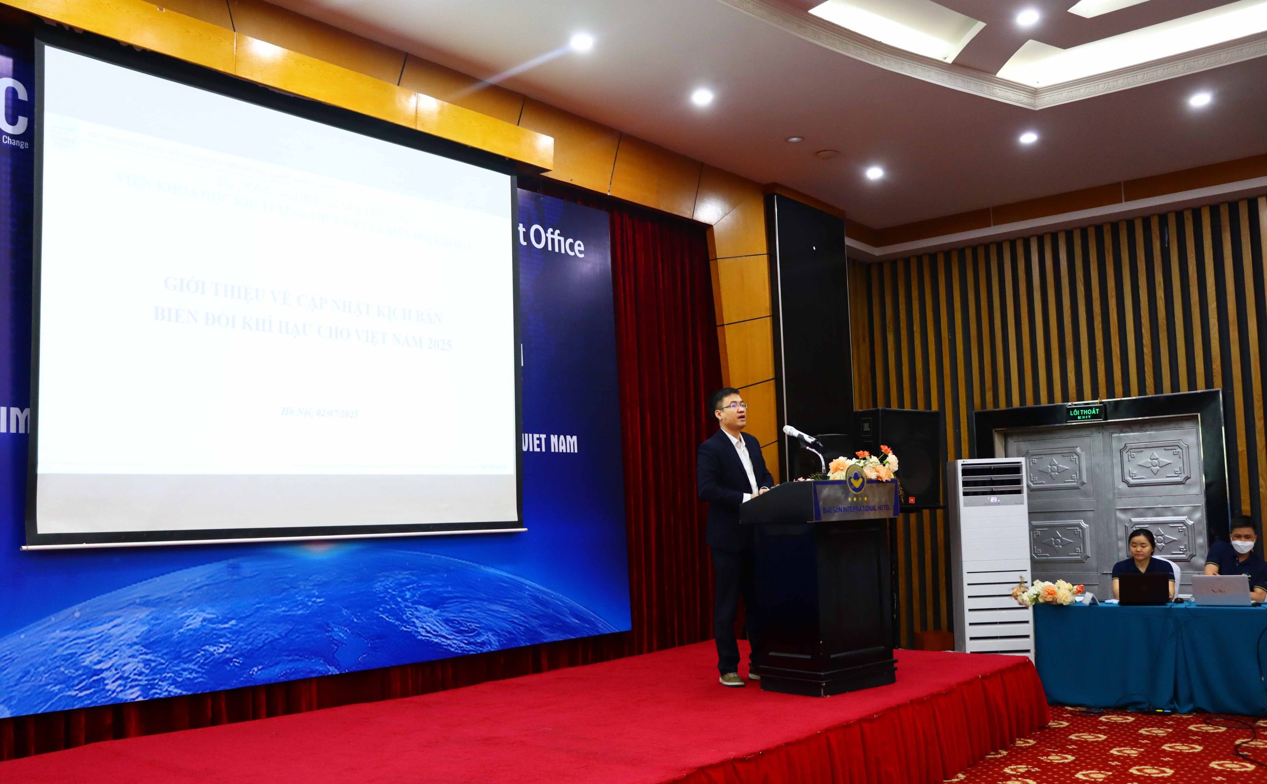 Tiến sĩ Trương Bá Kiên, Phó giám đốc Trung tâm Nghiên cứu Khí tượng Khí hậu đã trình bày những điểm mới trong Kịch bản biến đổi khí hậu (BĐKH) phiên bản cập nhật năm 2025 so với các phiên bản trước đó. TS. Vũ Văn Thăng, giám đốc Trung tâm Nghiên cứu Khí tượng Khí hậu, TS. Lê Quốc Huy, Phó giám đốc Trung tâm Nghiên cứu Thủy văn Hải văn và TS. Nguyễn Thanh Bằng, Trưởng phòng Phòng công nghệ KTTV&BĐKH cũng đã trình bày kết quả bước đầu về các kịch bản BĐKH, kịch bản nước biển dâng và nguy cơ ngập tương ứng với các kịch bản nước biển dâng cho Việt Nam. Theo đó, kịch bản mới sử dụng các kịch bản phát thải SSP (SSP1-2.6; SSP2-4.5; SSP3-7.0) thay thế cho RCP trong phiên bản 2020, dựa trên Báo cáo đánh giá lần thứ sáu (AR6) của IPCC. Thời kỳ tham chiếu cũng được điều chỉnh sang giai đoạn 1995–2014, có mức nhiệt trung bình cao hơn 0,85°C so với thời kỳ tiền công nghiệp.