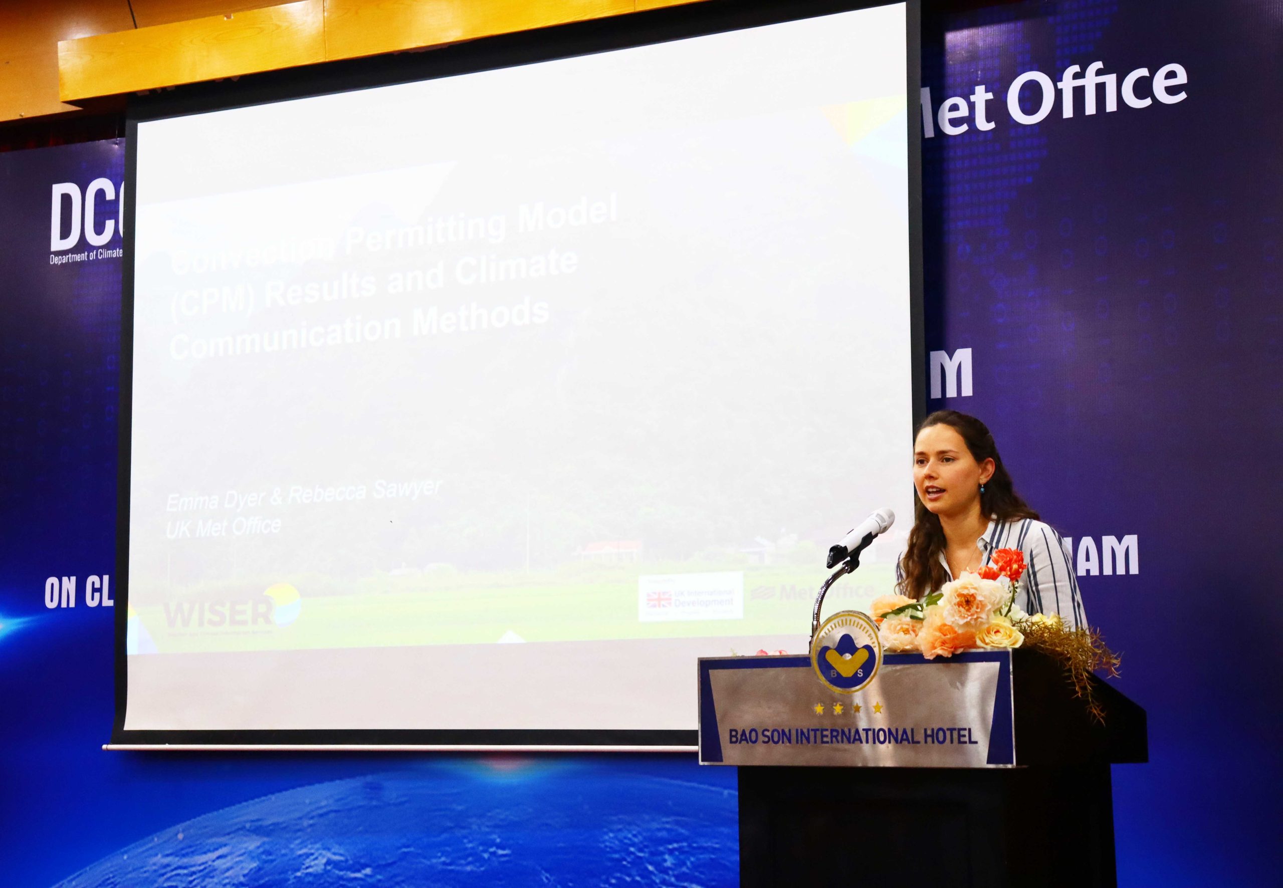 Ngoài ra, Bà Rebecca Sawyer, đại diện cơ quan khí tượng Anh đã giới thiệu một số phương pháp truyền thông hiệu quả nhằm truyền đạt thông tin khí hậu một cách phù hợp và dễ hiểu tới các nhóm đối tượng khác nhau.