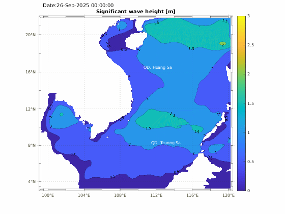 Dự báo biển Bản tin dự báo sóng trong Bão gần Biển Đông lúc 07h ngày 26/9/2025 Posted on 26 Tháng 9, 202527 Tháng 9, 2025 by tvhv 26 Th9 20250926_07h_Ban tin Du bao Song trong Bao gan Bien Dong (Bualoi) Bản tin dự báo nước dâng do bão và mực nước tổng cộng trong Bão số 5 lúc 01h ngày 26/9/2025 – Kết quả thử nghiệm mô hình SCHISM Bản tin dự báo nước dâng do bão và mực nước tổng cộng trong Bão số 5 lúc 07h ngày 26/9/2025 – Kết quả thử nghiệm mô hình SCHISM