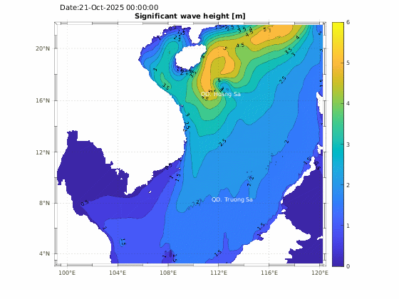 Dự báo biển, Thủy văn - Hải văn Bản tin dự báo sóng trong bão số 12 (Fengshen) lúc 13h ngày 21/10/2025 Posted on 21 Tháng 10, 2025 by tvhv 21 Th10 20251021_13h_Ban tin Du bao Song trong Bao so 12 (Fengshen) Bản tin Dự báo thủy văn lưu vực sông Kone – Hà Thanh ngày 21/10/2025 Khoa học và quản lý nước hướng tới phát triển bền vững trong bối cảnh biến đổi khí hậu