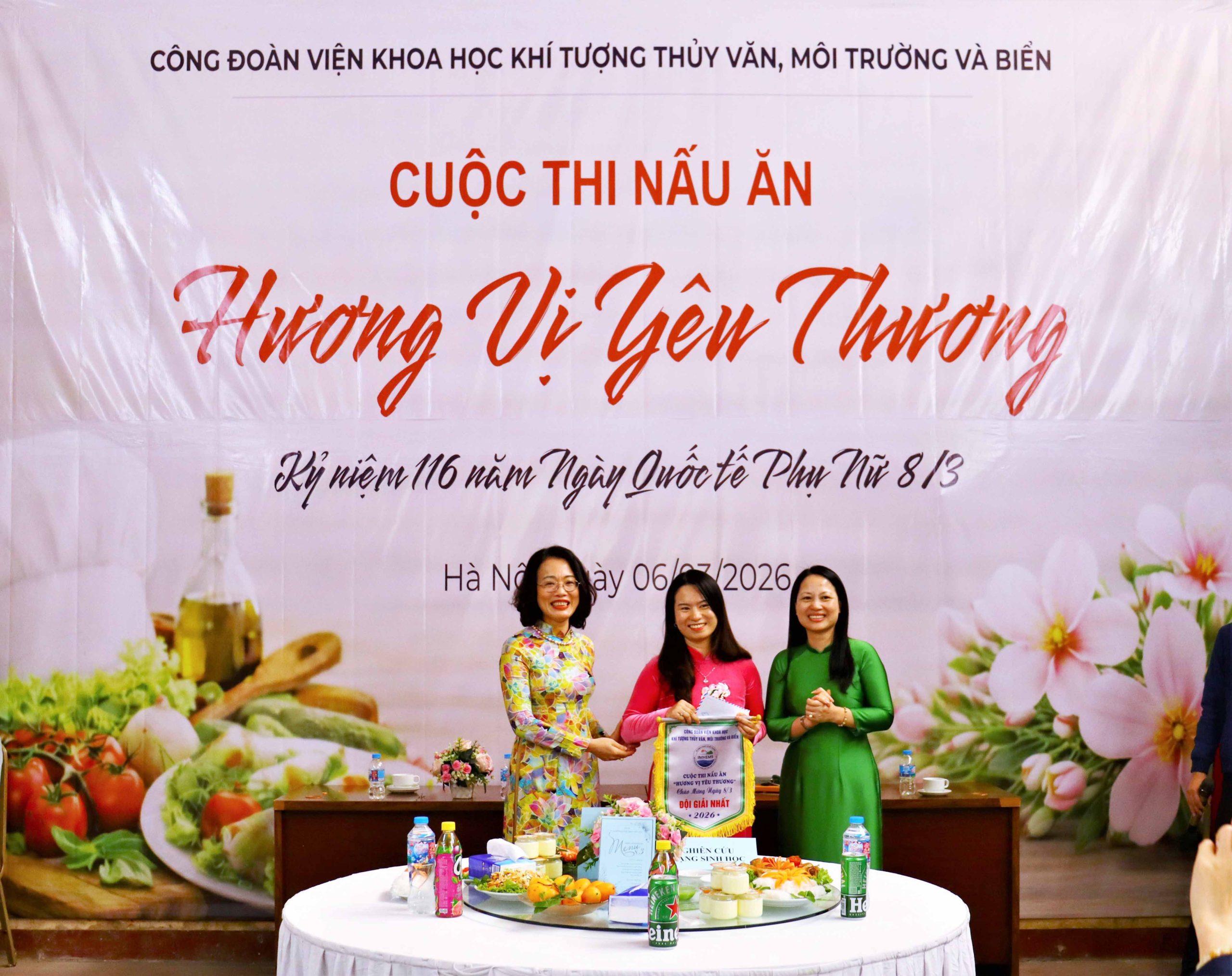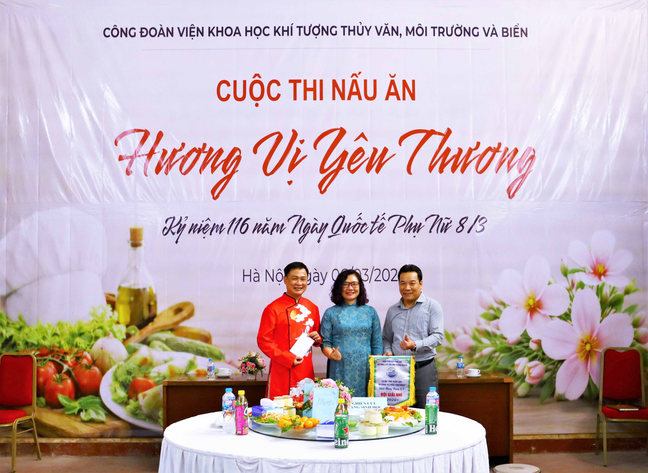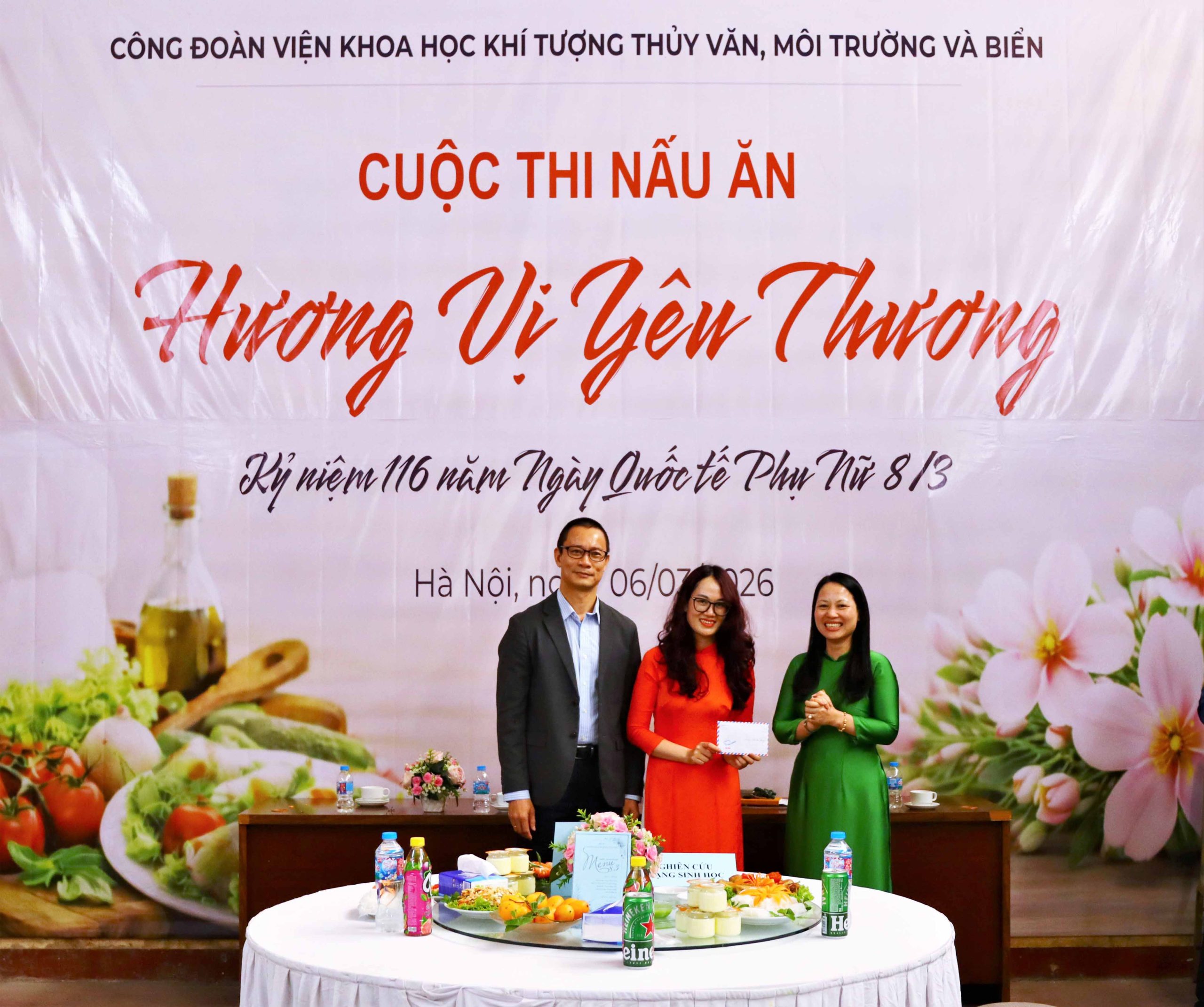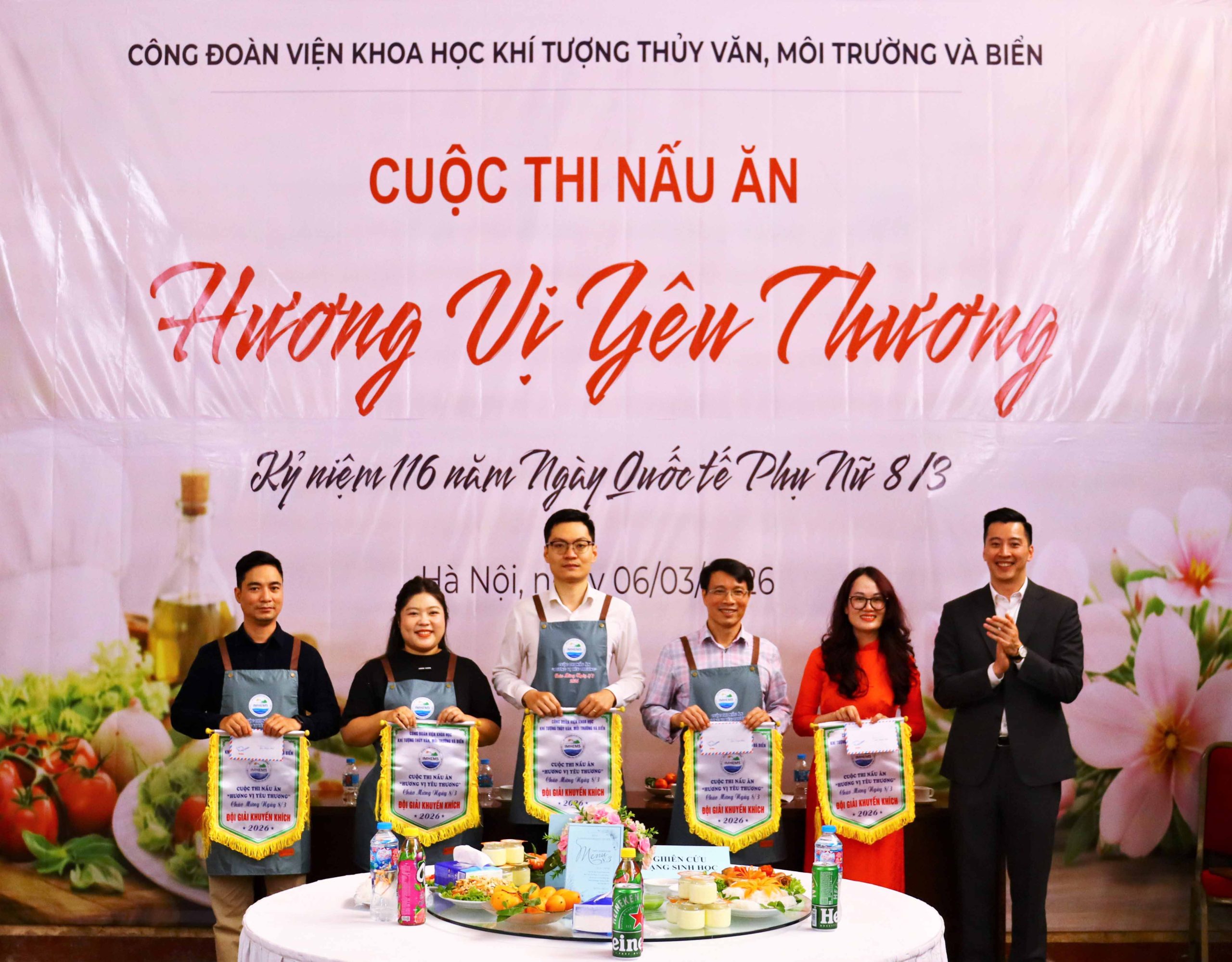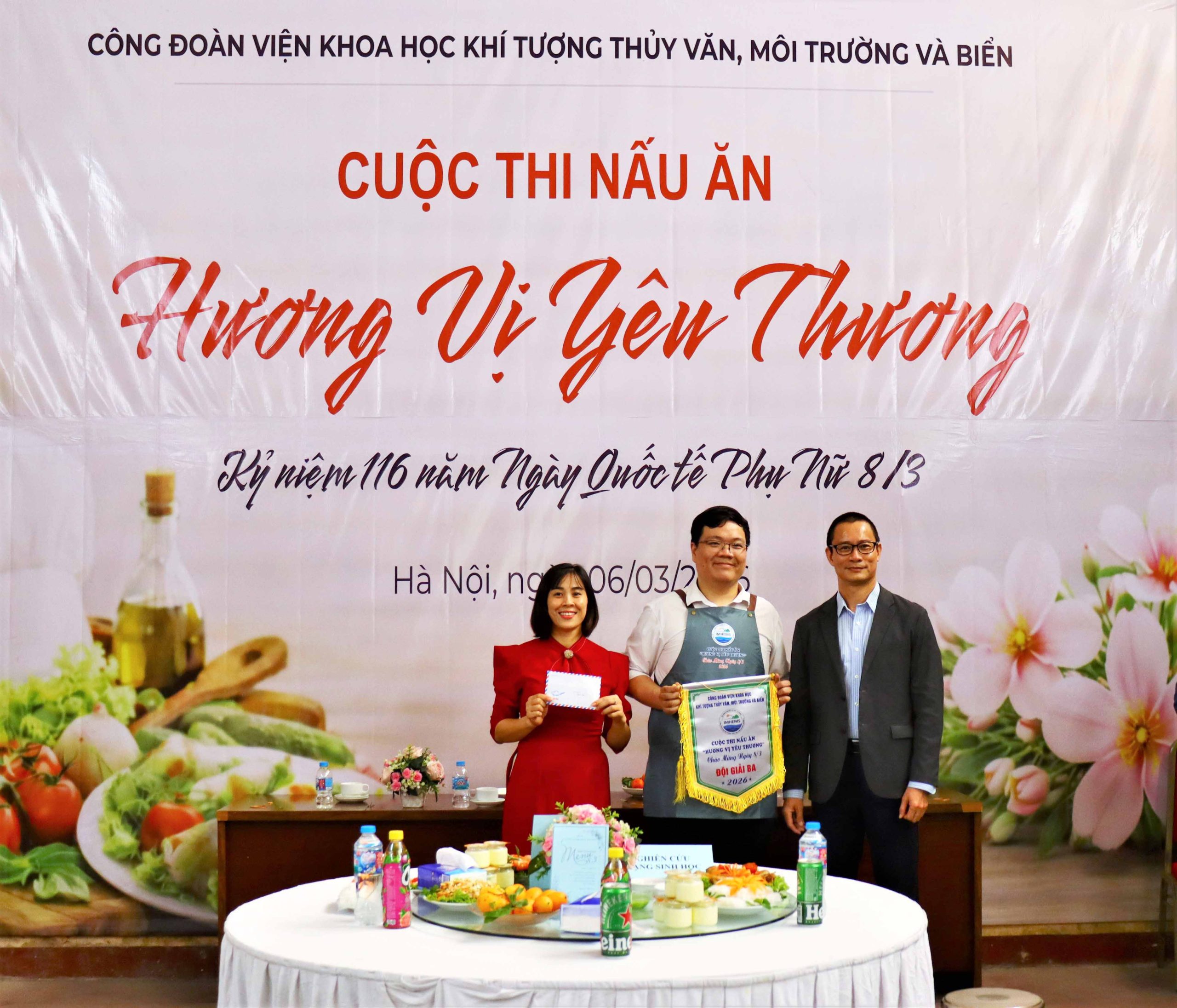 Ngày 06/3/2026, tại Hà Nội, Viện Khoa học Khí tượng Thủy văn, Môi trường và Biển (VKTTVMTB) đã tổ chức lễ công bố quyết định kiện toàn Ban chấp hành Công đoàn cơ sở Viện và Hội thi nấu ăn với chủ đề “Hương vị yêu thương” chào mừng kỷ niệm 116 năm Ngày Quốc tế Phụ nữ 8/3 (08/3/1910 – 08/3/2026). Sự kiện có sự tham dự của đại diện Công đoàn Bộ Nông nghiệp và Môi trường Việt Nam, lãnh đạo Viện cùng đông đảo cán bộ, viên chức và người lao động trong toàn Viện.