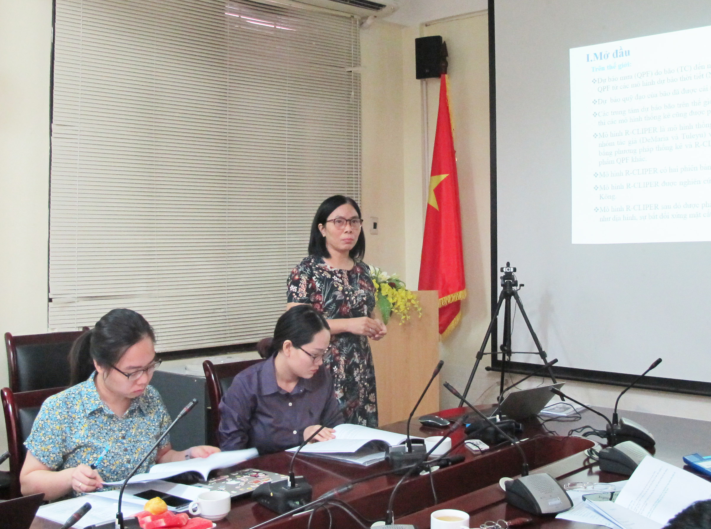 Báo cáo cuối cùng tại hội thảo là Nghiên cứu xây dựng mô hình quán tính (R-CLIPPER) dự báo mưa đi kèm bão cho khu vực Việt Nam do CN Nguyễn Thu Hằng trình bày đã cho thấy những kết quả bước đầu về việc lựa chọn mô hình thích hợp trong xác định mưa 24h.