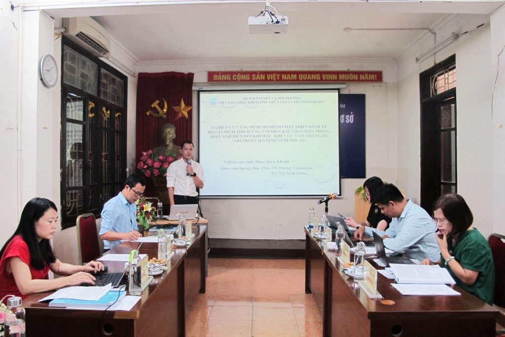 Sáng ngày 19/7, Viện Khoa học Khí tượng Thủy văn và Biến đổi khí hậu (KTTVBĐKH) đã tổ chức Hội đồng đánh giá luận án tiến sĩ cấp Cơ sở của nghiên cứu sinh (NCS) Đặng Quốc Khánh với đề tài: “Nghiên cứu xác định mô hình phát triển kinh tế hộ gia đình thích ứng với điều kiện hạn hán trong bối cảnh biến đổi khí hậu khu vực Nam Trung Bộ (Thí điểm cho tỉnh Ninh Thuận)”; Ngành: Biến đổi khí hậu; Mã số: 9440221.