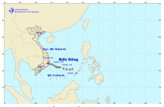 Đường đi của áp thấp nhiệt đới tháng 10 năm 2021. Ảnh: Tổng cục KTTV