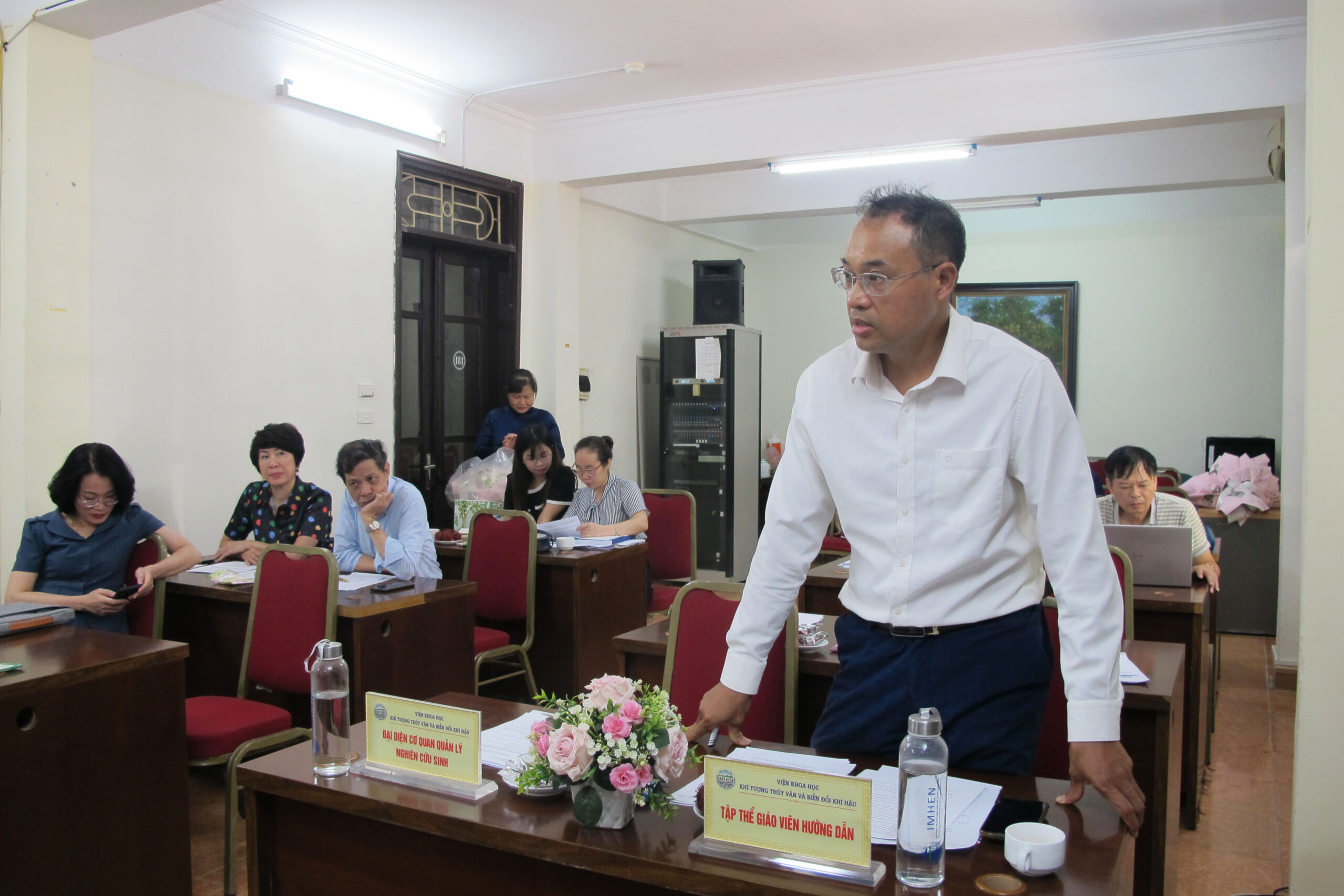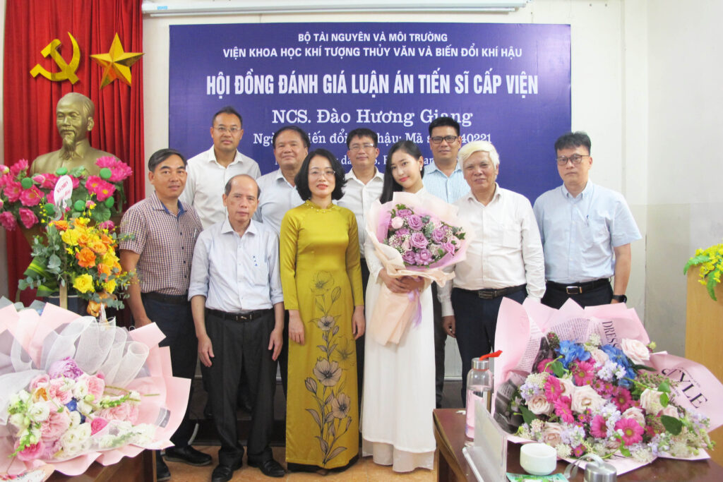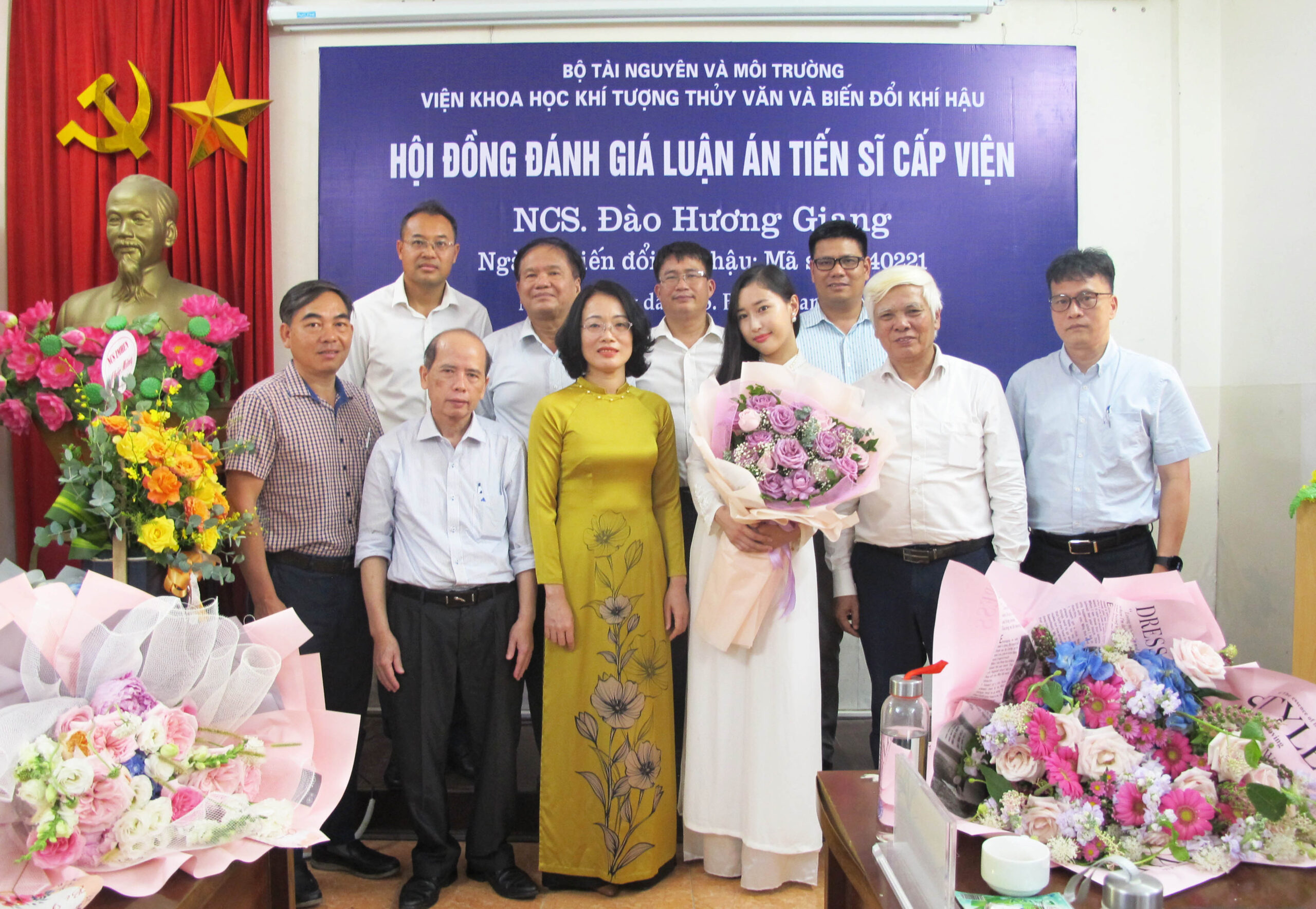 Tới dự buổi đánh giá cấp Viện của NCS. Đào Hương Giang có đại diện cơ sở đào tạo là PGS.TS. Phạm Thị Thanh Ngà (Phó Viện trưởng Viện Khoa học Khí tượng Thủy văn và Biến đổi khí hậu), PGS.TS. Nguyễn Văn Thắng (chuyên gia cao cấp của Viện – Tổng Biên tập Tạp chí Khoa học Biến đổi khí hậu) cùng đại diện các cơ quan phối hợp đào tạo với Viện và các chuyên gia thuộc Bộ Tài nguyên Môi trường.