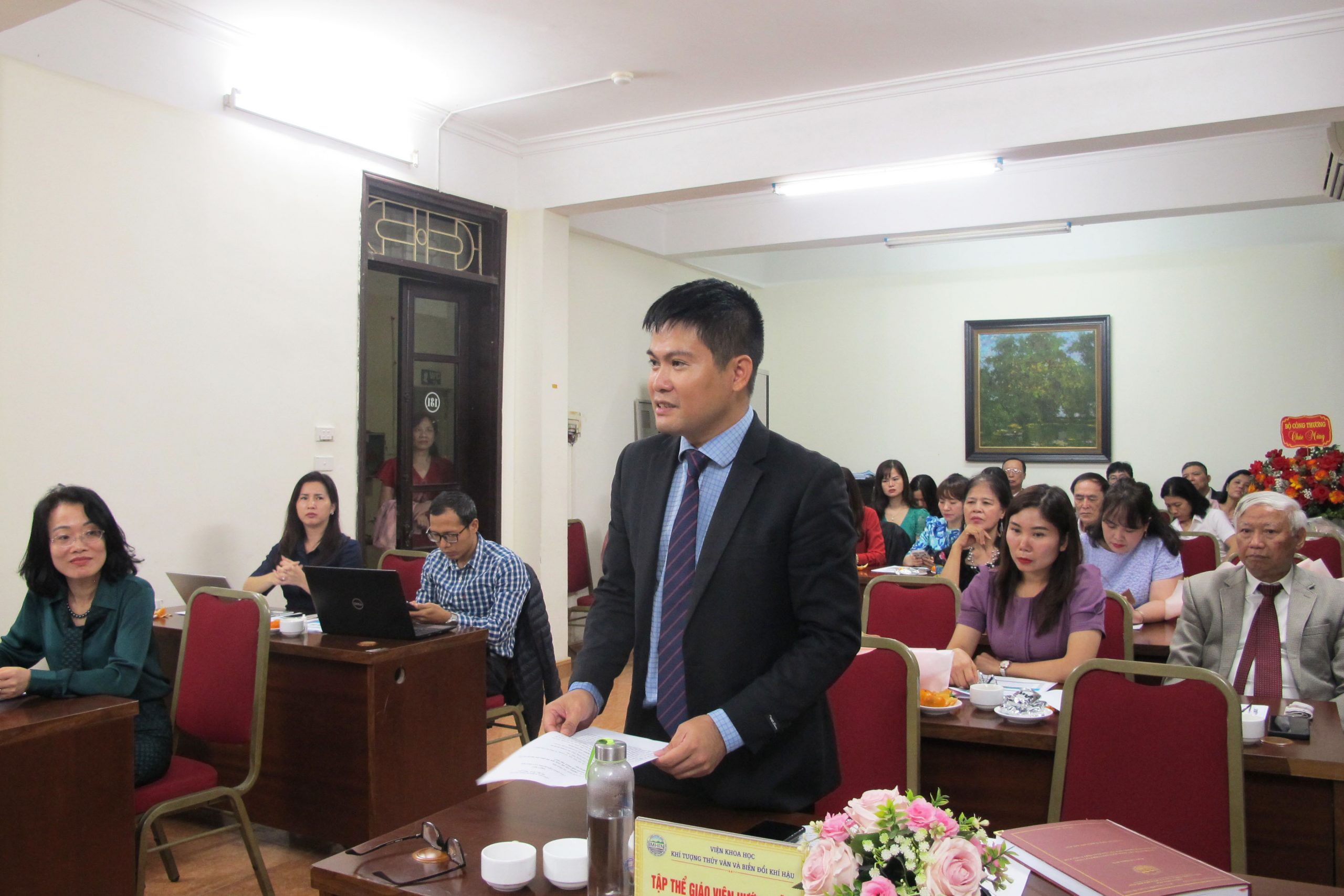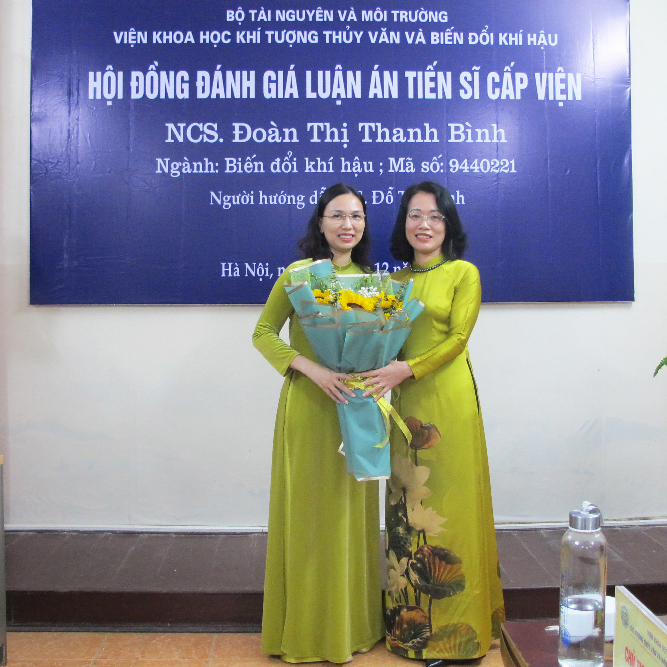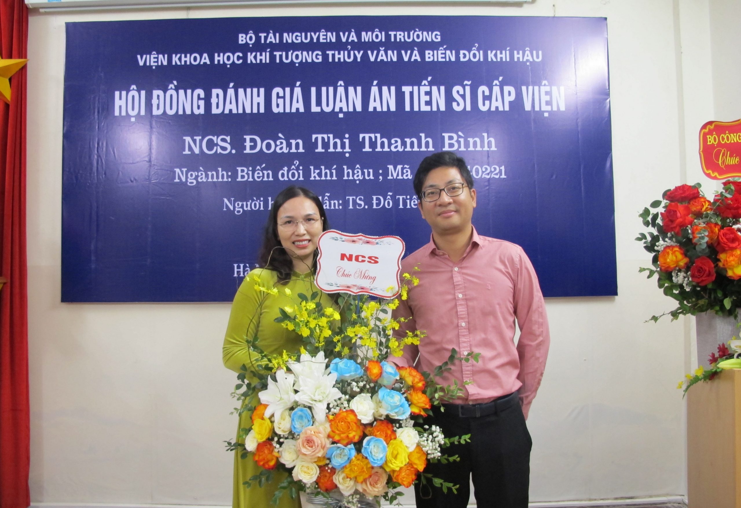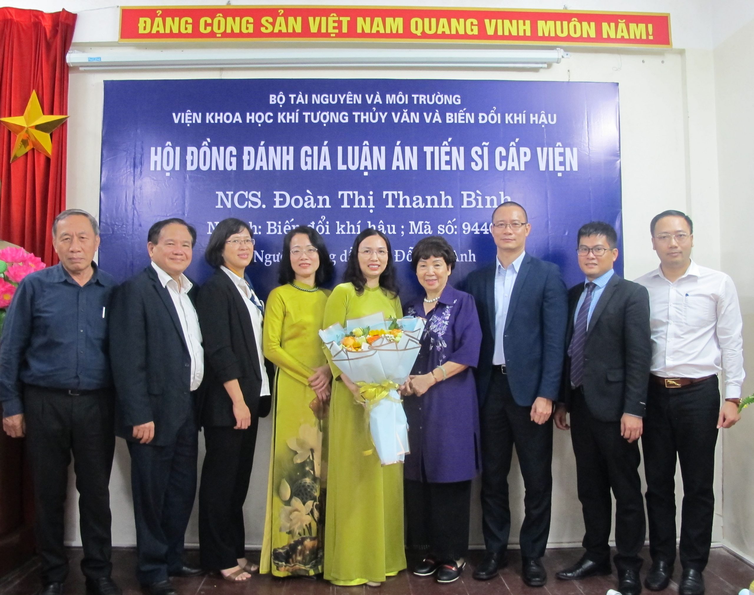 Tới dự buổi đánh giá cấp Viện của NCS. Đoàn Thị Thanh Bình có đại diện cơ sở đào tạo là PGS.TS. Phạm Thị Thanh Ngà (Viện trưởng Viện Khoa học Khí tượng Thủy văn và Biến đổi khí hậu), PGS.TS. Nguyễn Văn Thắng (chuyên gia cao cấp của Viện – Tổng Biên tập Tạp chí Khoa học Biến đổi khí hậu), đại diện các cơ quan phối hợp đào tạo với Viện và các chuyên gia thuộc Bộ Tài nguyên Môi trường.