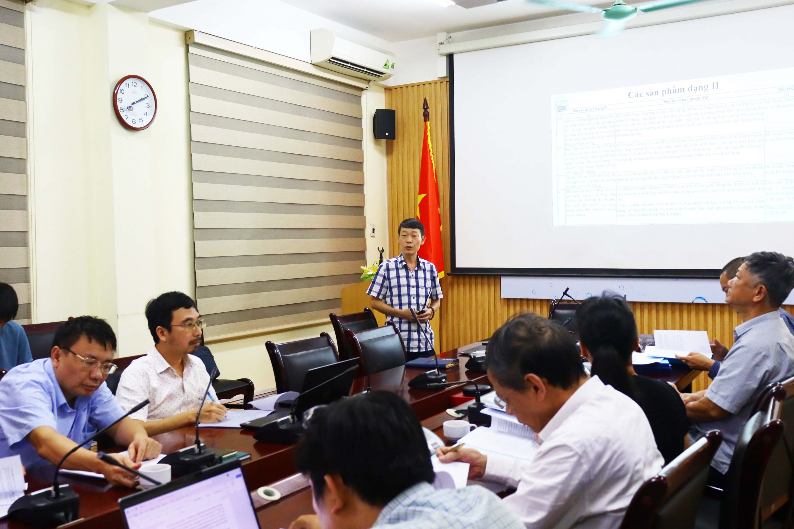 Dưới sự chủ trì của TS. Lê Ngọc Cầu (Chủ tịch Hội đồng), các thành viên hội đồng, các nhà khoa học tham dự buổi đánh giá đã nghe TS. Vũ Văn Thăng trình bày báo cáo tóm tắt, báo cáo tổng kết, các sản phẩm của đề tài.