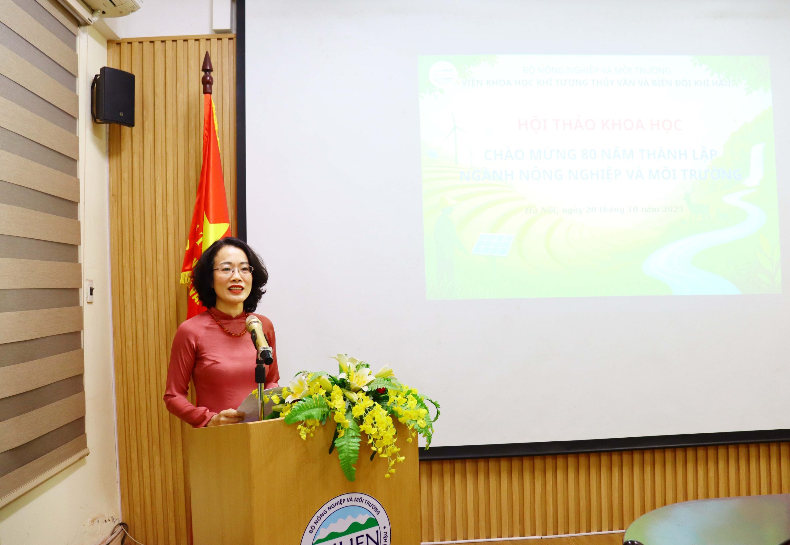 “Nhân dịp kỷ niệm 80 năm thành lập ngành Nông nghiệp và Môi trường, trong đó có ngành KTTV và chào mừng Ngày Phụ nữ Việt Nam 20/10, Viện KTTVBĐKH trong khuôn khổ thực hiện kế hoạch năm 2025, trân trọng tổ chức “Hội thảo khoa học 80 năm thành lập ngành Nông nghiệp và Môi trường” nhằm thúc đẩy chia sẻ và trao đổi những kiến thức khoa học về lĩnh vực khí tượng, thủy văn, môi trường và biến đổi khí hậu” – Bà Ngà nhấn mạnh.