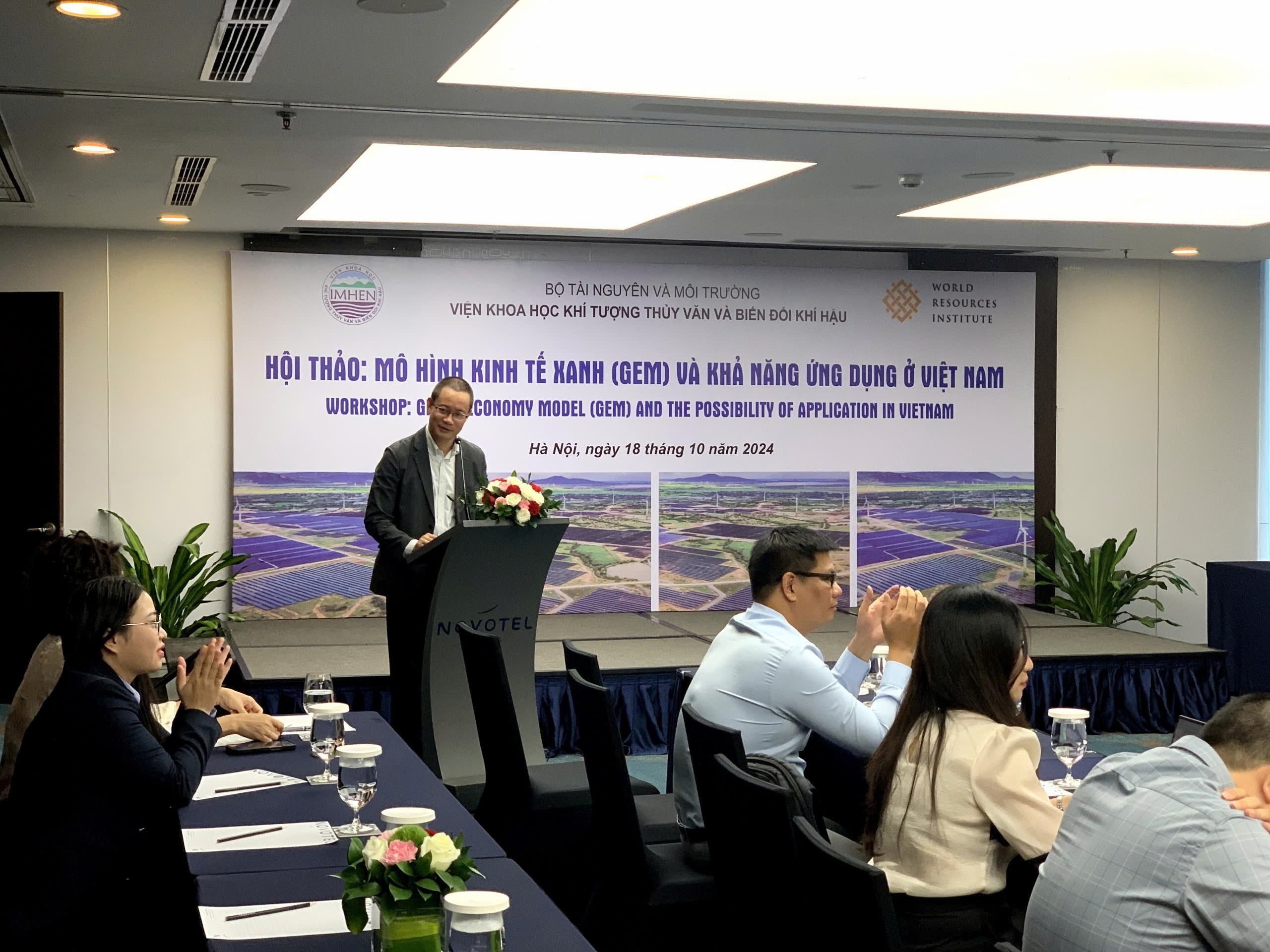 Ngày 18/10/2024, tại khách sạn Novotel Suites Hà Nội, số 5 Duy Tân, Dịch Vọng Hậu, Cầu Giấy, Hà Nội, Viện Khí tượng Thủy văn và Biến đổi khí hậu tổ chức hội thảo “Mô hình kinh tế xanh (GEM) và khả năng ứng dụng ở Việt Nam ” được tài trợ bởi Viện Tài nguyên Thế giới (WRI). Tham dự Hội thảo có đại biểu từ Viện Khoa học Khí tượng Thủy văn và Biến đổi khí hậu, đại diện từ các Bộ/ngành và các chuyên gia/nhà khoa học, các Tổ chức, Viện nghiên cứu, các trường Đại học/học viên trên địa bàn thành phố Hà Nội.