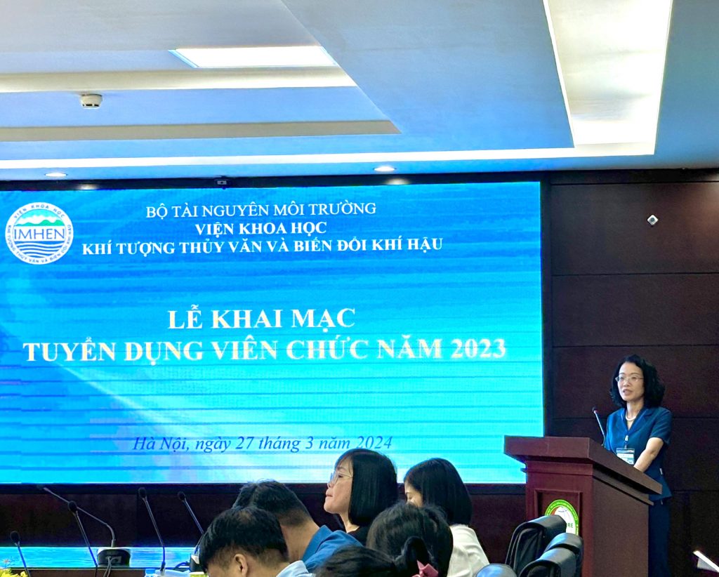 Ngày 27 tháng 3 năm 2023, tại Trường Đại học Tài nguyên và Môi trường Hà Nội, Viện Khoa học Khí tượng Thủy văn và Biến đổi khí hậu đã tổ chức lễ Khai mạc kỳ thi tuyển dụng viên chức năm 2023. Viện trưởng Phạm Thị Thanh Ngà – Chủ tịch hội đồng tuyển dụng viên chức năm 2023 chủ trì lễ khai mạc.