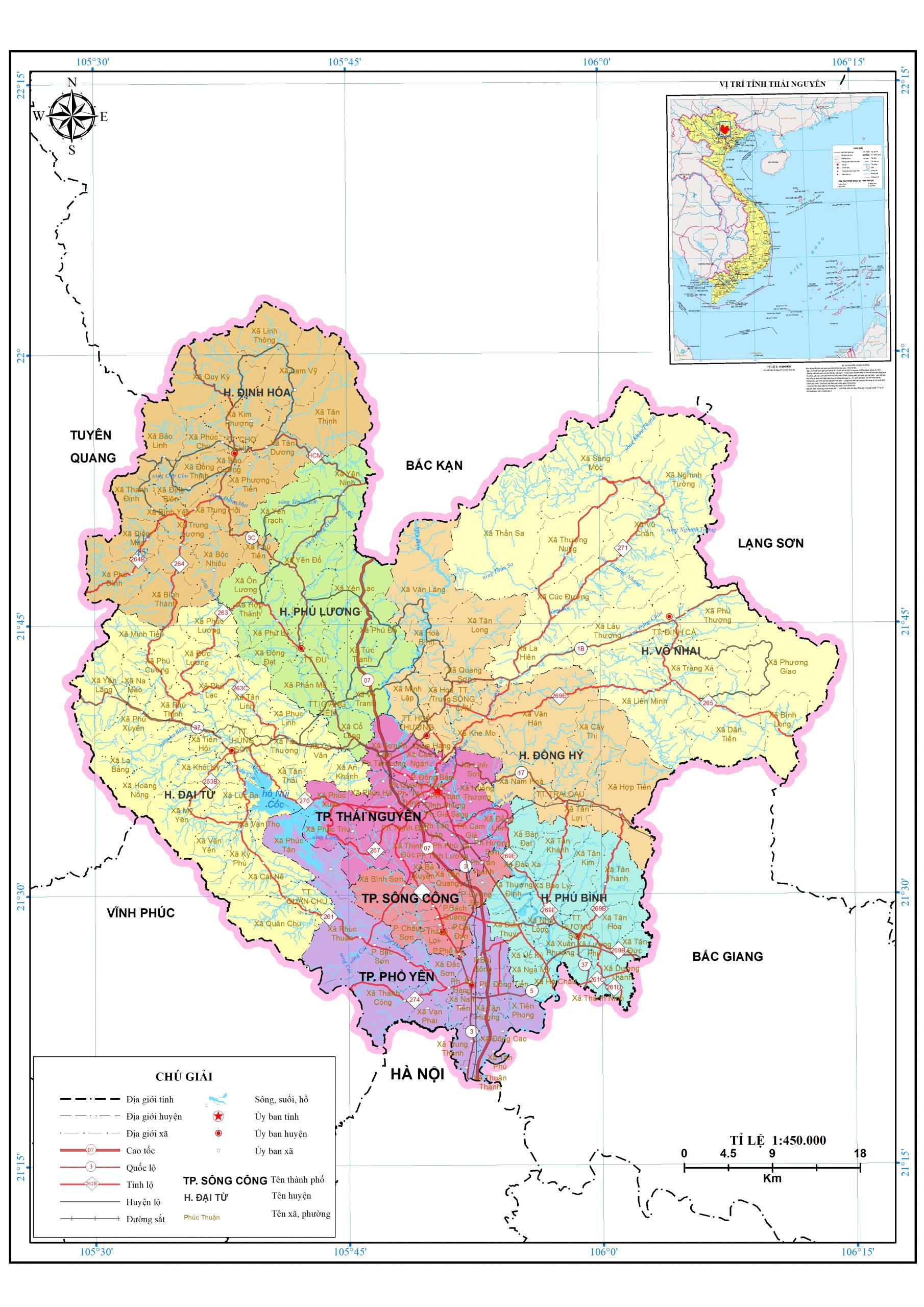 Sơ đồ vị trí tỉnh Thái Nguyên