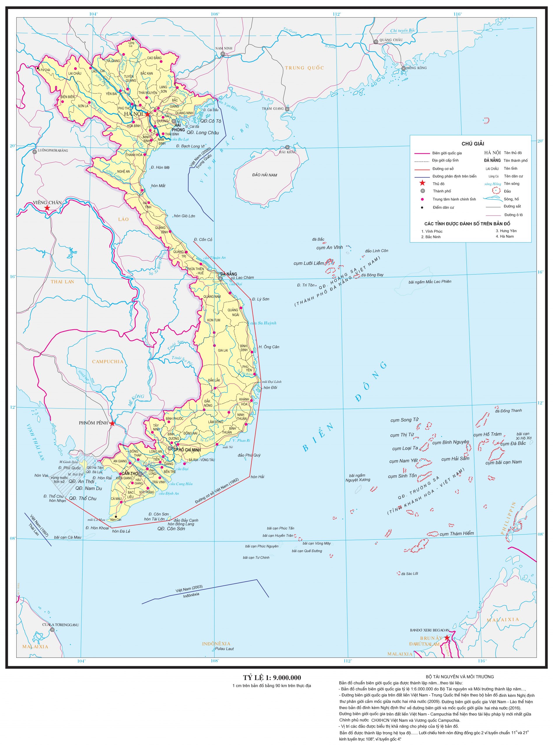 Mẫu trình bày bản đồ chuẩn biên giới quốc gia tỷ lệ 1:9.000.000