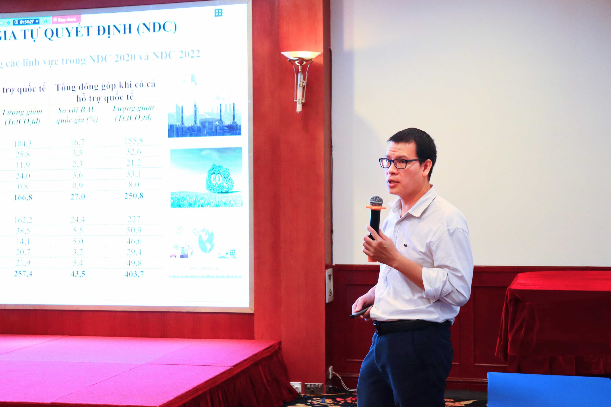 Đại diện Cục Biến đổi khí hậu, TS. Phạm Văn Sỹ (Phòng Thích ứng biến đổi khí hậu) đã trình bày về chính sách biến đổi khí hậu tại Việt Nam, kết quả thực hiện từ COP29. Trong đó tập trung vào cam kết quốc tế về ỨPBĐKH của Việt Nam, đóng góp do quốc gia tự quyết định (NDC), kế hoạch quốc gia thích ứng với biến đổi khí hậu (NAP), một số kết quả đạt được về ỨPBĐKH từ COP29 và quan điểm của Việt Nam tại COP30.