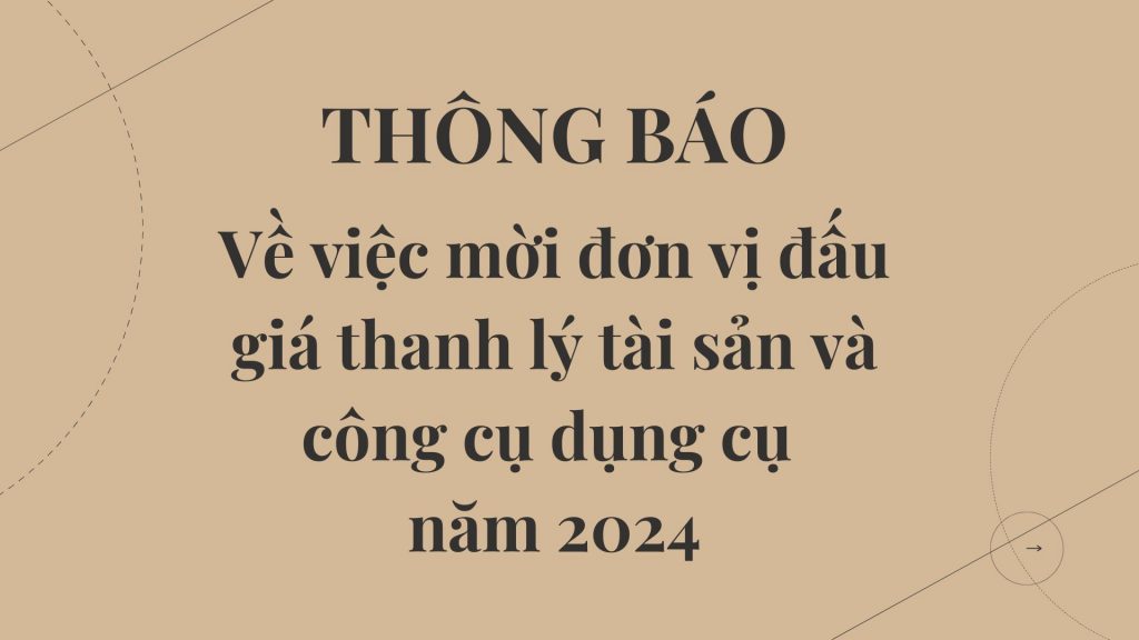 Viện Khoa học Khí tượng Thủy văn và Biến đổi khí hậu thông báo và mời đơn vị có chức năng và thẩm quyền đấu giá tài sản liên hệ với Viện để thực hiện thanh lý tài sản và công cụ dụng cụ năm 2024 theo trình tự, thủ tục quy định của Nhà nước và của Bộ Tài nguyên và Môi trường.