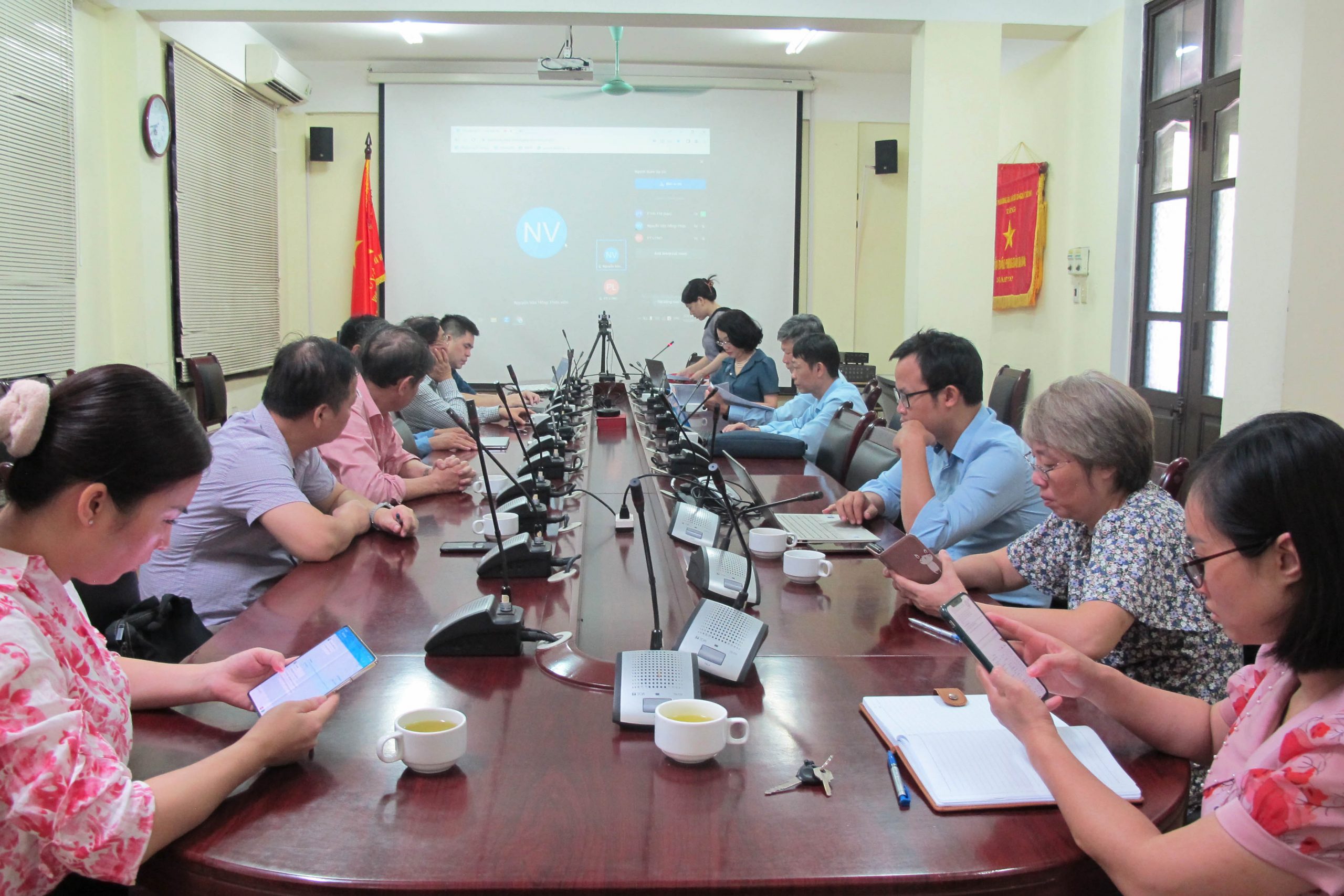 Buổi họp thông qua cấp bằng tiến sĩ cho NCS. Nguyễn Thanh Trang diễn ra dưới sự chủ trì của PGS. TS. Phạm Thị Thanh Ngà (Chủ tịch Hội đồng) với sự tham gia của các thành viên trong Hội đồng Khoa học, Công nghệ và Đào tạo của Viện.