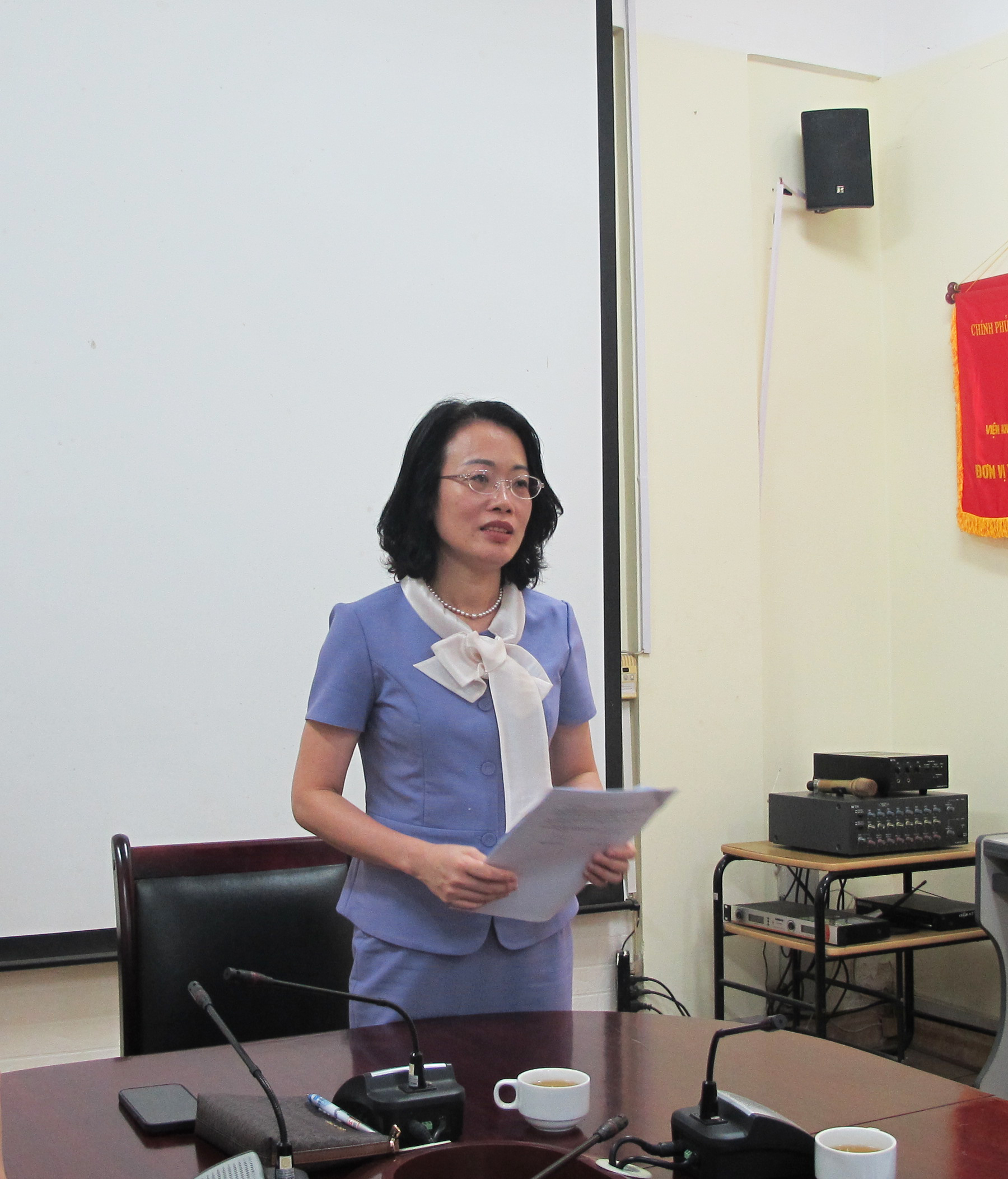 Dưới sự chủ trì của PGS. TS. Phạm Thị Thanh Ngà (Chủ tịch Hội đồng), TS. Trần Thanh Thủy (Trưởng phòng Khoa học, Đào tạo và Hợp tác quốc tế) đã đọc kết quả thẩm tra quá trình đào tạo và chất lượng luận án của NCS.