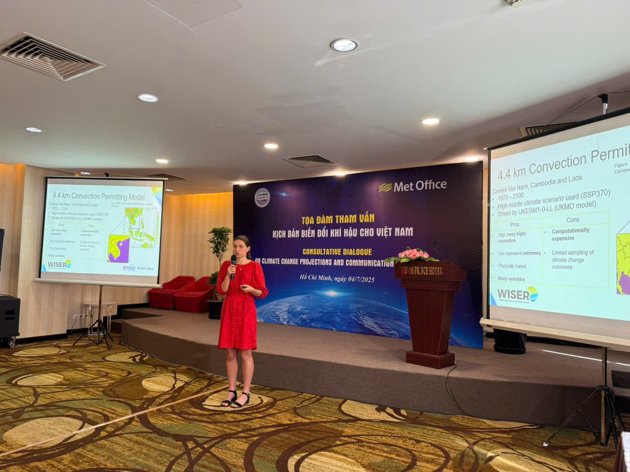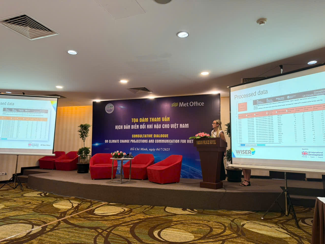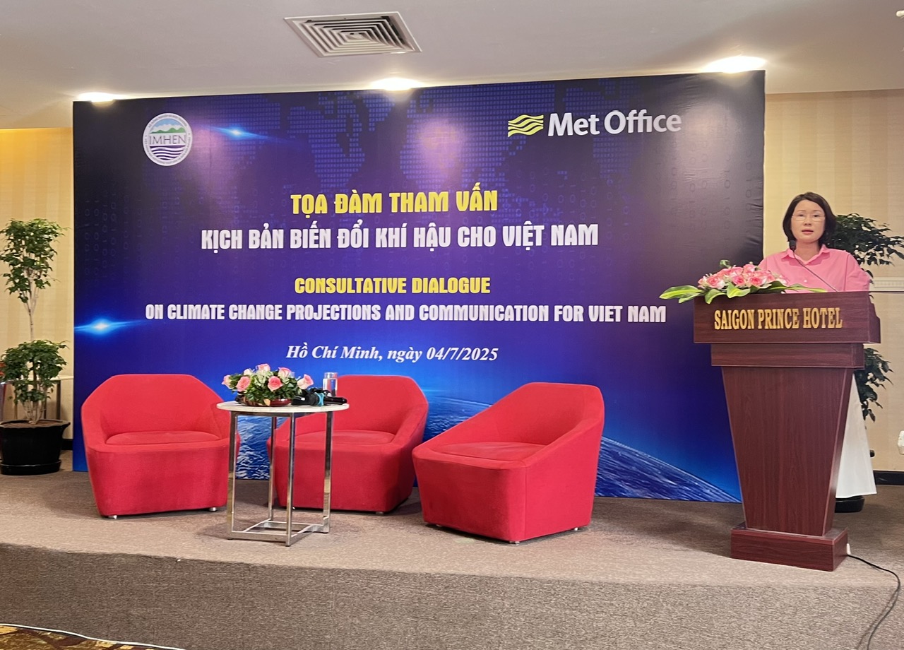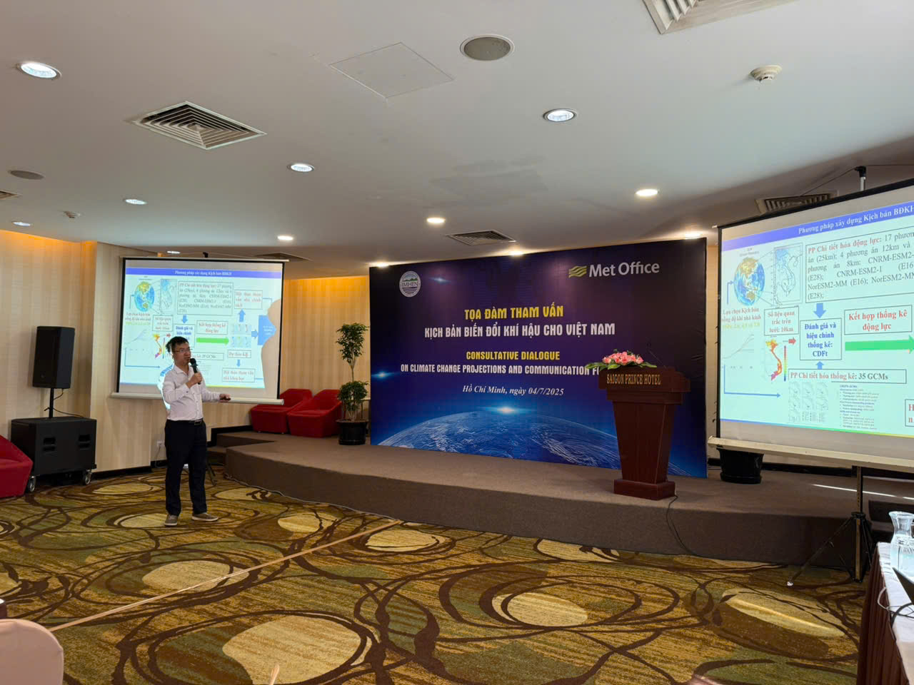 Ngày 4/7/2025 tại Thành phố Hồ Chí Minh, Viện Khoa học Khí tượng Thủy văn và Biến đổi Khí hậu (KTTVBĐKH) phối hợp với Vụ Khoa học và Công nghệ và Cơ quan Khí tượng Hoàng gia Anh (UK Met Office) tổ chức Tọa đàm tham vấn Kịch bản Biến đổi khí hậu cho Việt Nam. Đây là diễn đàn khoa học nhằm trao đổi chuyên môn giữa các nhà khoa học trong nước, quốc tế và các bên liên quan về quá trình xây dựng, cập nhật kịch bản biến đổi khí hậu (BĐKH) phiên bản năm 2025 – công cụ quan trọng phục vụ công tác quy hoạch, phát triển và ứng phó hiệu quả với BĐKH tại Việt Nam. Tọa đàm được tổ chức trong khuôn khổ Chương trình WISER (Dịch vụ Thông tin Thời tiết và Khí hậu) khu vực châu Á – Thái Bình Dương, do Bộ Ngoại giao, Khối thịnh vượng chung và Phát triển Vương quốc Anh (FCDO) tài trợ.