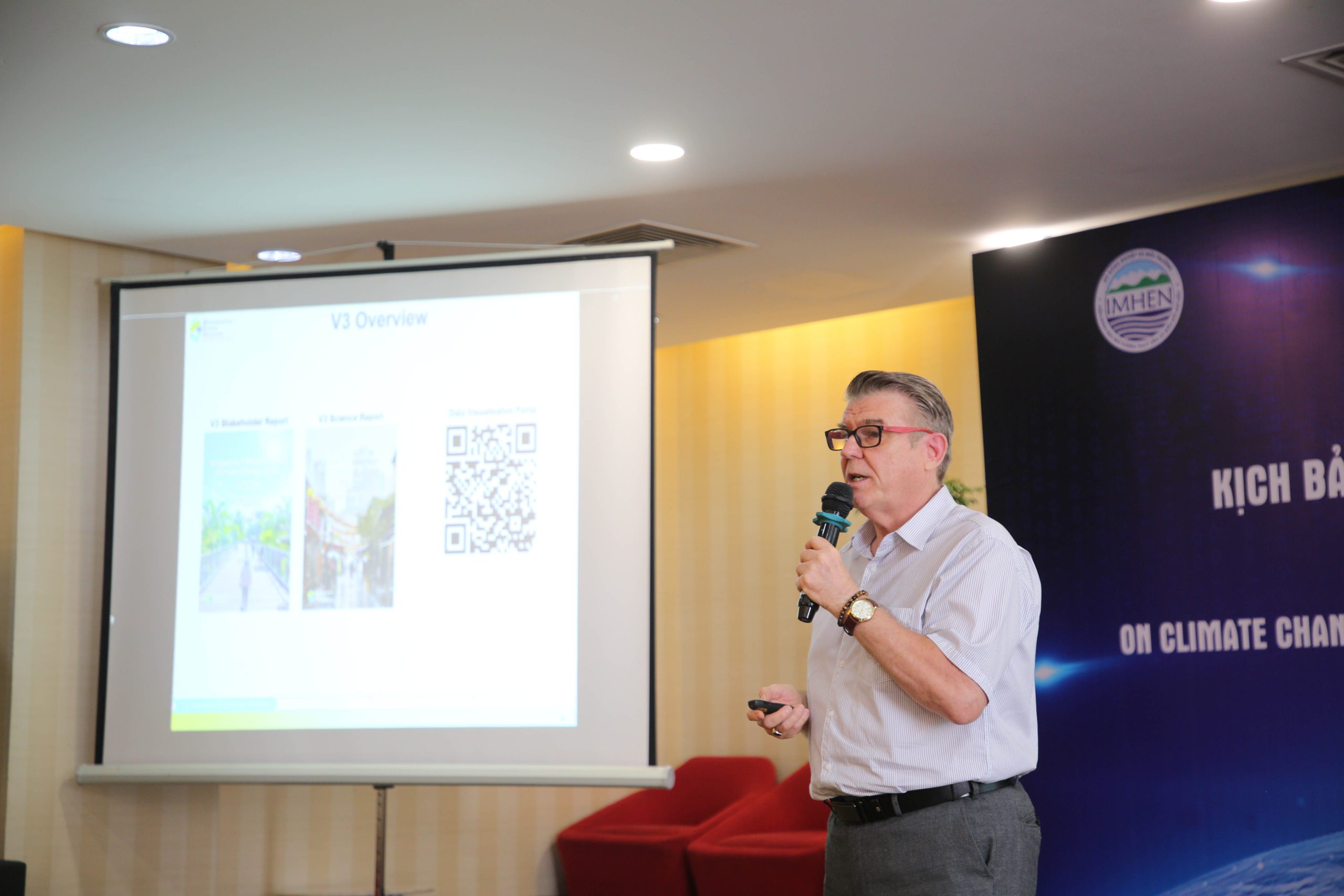 Tiến sĩ Trương Bá Kiên, Phó giám đốc Trung tâm Nghiên cứu Khí tượng Khí hậu, TS. Lê Quốc Huy, Phó giám đốc Trung tâm Nghiên cứu Thủy văn Hải văn và TS. Nguyễn Thanh Bằng, Trưởng phòng Phòng công nghệ KTTV&BĐKH cũng đã trình bày kết quả bước đầu về các kịch bản BĐKH, kịch bản nước biển dâng và nguy cơ ngập tương ứng với các kịch bản nước biển dâng cho Việt Nam. Theo đó, kịch bản mới sử dụng các kịch bản phát thải SSP (SSP1-2.6; SSP2-4.5; SSP3-7.0) thay thế cho RCP trong phiên bản 2020, dựa trên Báo cáo đánh giá lần thứ sáu (AR6) của IPCC. Thời kỳ tham chiếu cũng được điều chỉnh sang giai đoạn 1995–2014, có mức nhiệt trung bình cao hơn 0,85°C so với thời kỳ tiền công nghiệp.