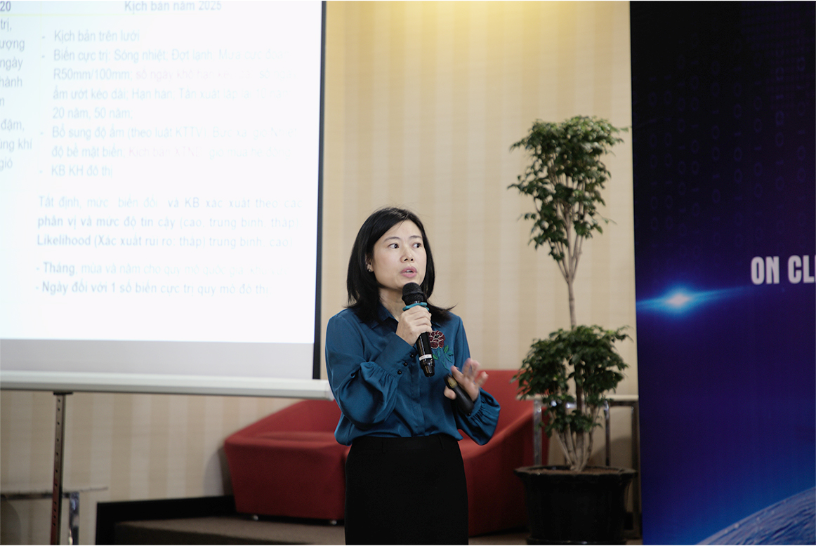 Tại Tọa đàm, các chuyên gia quốc tế và trong nước chia sẻ về phương pháp xây dựng kịch bàn BĐKH cho Việt Nam, kịch bản BĐKH và nước biển dâng cho Việt Nam, nguy cơ ngập do nước biển dâng. TS. Trần Thanh Thủy, Trưởng phòng Khoa học, Đào tạo và Hợp tác quốc tế đã trình bày những điểm mới trong Kịch bản biến đổi khí hậu (BĐKH) phiên bản cập nhật năm 2025 so với các phiên bản trước đó. Tiếp đến, bà Emma Dyer (Met Office) đã chia sẻ kết quả mô phỏng khí hậu sử dụng mô hình CPM có độ phân giải cao 4,4 km, lần đầu tiên được áp dụng cho khu vực Việt Nam. Mô hình này cho phép mô phỏng chính xác hơn các hiện tượng mưa lớn, dông, nắng nóng kéo dài, từ đó cung cấp nền tảng khoa học vững chắc cho việc xây dựng các biện pháp ứng phó cụ thể.
