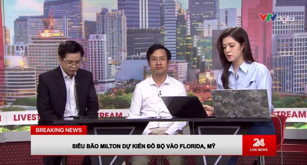 Các tin chung, Tin tức nổi bật TS. Trương Bá Kiên trả lời phỏng vấn về siêu bão thế kỷ Milton trên VTV24 Posted on 10 Tháng 10, 2024 by admin 10 Th10 Bản tin dự báo sóng và mực nước lúc 13 giờ ngày 09/10/2024 Bản tin Dự báo thủy văn lưu vực sông Kone – Hà Thanh ngày 10/10/2024