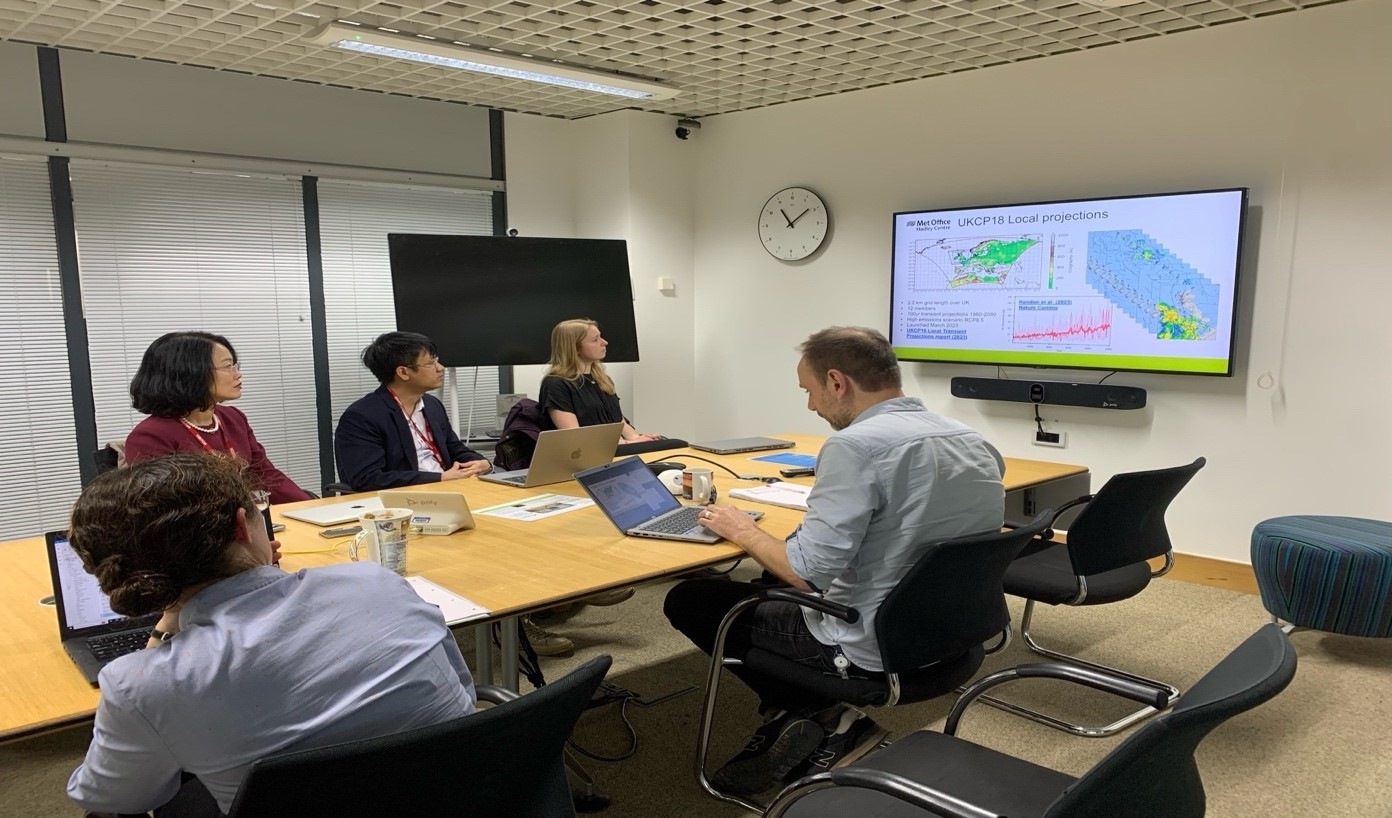 Cũng trong thời gian làm việc tại Met Office, đoàn đã tham gia các buổi trao đổi với nhóm làm việc về Kịch bản BĐKH và nước biển dâng, thống nhất về việc tăng cường năng lực cho Viện trong việc xây dựng phát triển kịch bản biến đổi khí hậu và nước biển dâng trên cơ sở chia sẻ các sản phẩm chi tiết hoá động lực độ phân giải cao theo báo cáo mới nhất IPCC AR6 và phát triển và áp dụng các phương pháp tiếp cận phù hợp trong việc xây dựng Kịch bản BĐKH và nước biển dâng.