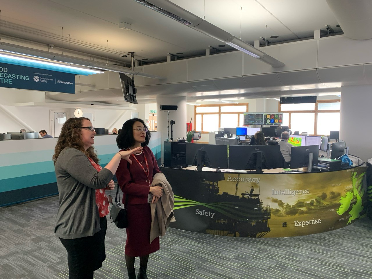 Cùng với đó, Đoàn đã tham quan đơn vị dự báo nghiệp vụ thời tiết của Met Office, được Trưởng đơn vị nghiệp vụ giới thiệu chi tiết các quy trình dự báo thời tiết hàng ngày, thời tiết cực đoan, thời tiết hàng không, thuỷ văn lũ lụt và thời tiết thiên văn (bão từ). Hai bên đã trao đổi chia sẻ kinh nghiệm dự báo cũng như trao đổi tài liệu nhằm thúc đẩy công tác nghiệp vụ của Viện trong công tác phòng tránh thiên tai chung của Bộ Tài nguyên và Môi trường.