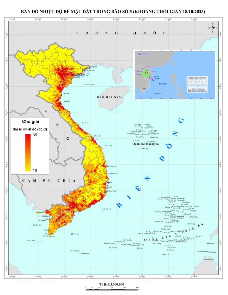 Cơn bão số 5 đổ bộ vào đất liền trong khoảng thời gian từ 20/10-21/10/2023 nhiệt độ bề mặt đất có sự tăng lên ở cả 2 miền Bắc và Nam. Nhiệt độ có sự biến đổi không giống như những cơn bão trước, nhiệt độ cao (35 độ C) chủ yếu tập trung ở TP.HCM, Hà Nội và ven biển các tỉnh Thanh Hóa, Nghệ An. Các tỉnh miền Trung và miền núi phía Bắc nhiệt độ duy trì ở mức dưới 30 độ C.