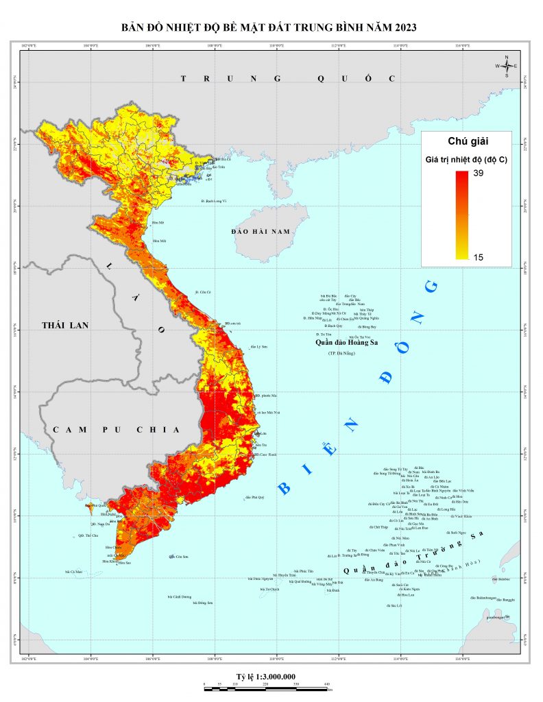 Từ bản đồ trên cho thấy, phần lớn diện tích Việt Nam thuộc vùng có nhiệt độ cao. Nhiệt độ duy trì ở mức từ 30 đến 39 độ C tập trung chủ yếu ở vùng Tây Nguyên và Nam Bộ, đây là những khu vực có nền nhiệt độ trung bình năm tương đối cao đặc biệt là Tây Nguyên và phần ven biển Nam Trung Bộ là những vùng có nhiệt độ cao nhất lên đến 39 độ C. Trong khí đó các tỉnh miển Bắc lại duy trì mức nhiệt độ thấp hơn chủ yếu là dưới 30 độ C, đặc biệt là các tỉnh miền núi phía Bắc có nhiệt độ bề mặt tương đối thấp chỉ ở mức 15 độ C.