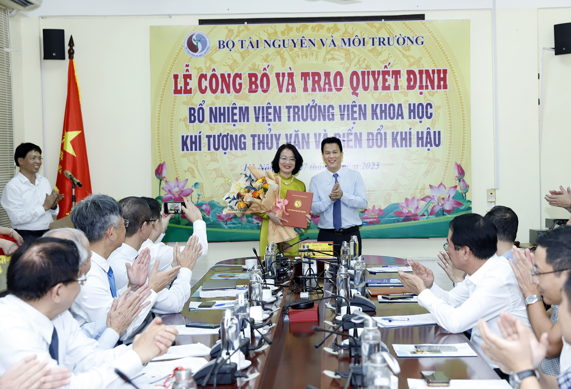 Tại buổi lễ, đại diện Vụ Tổ chức cán bộ, Bộ Tài nguyên và Môi trường, ông Nguyễn Kim Tuyển (Phó Vụ trưởng) đã công bố quyết định số 1888/QĐ-BTNMT ngày 10/7của Bộ trưởng Bộ Tài nguyên và Môi trường Đặng Quốc Khánh bổ nhiệm PGS.TS Phạm Thị Thanh Ngà, Phó Viện trưởng Viện KTTVBĐKH giữ chức Viện trưởng Viện KTTVBĐKH, Bộ Tài nguyên và Môi trường.