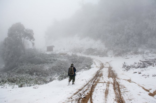 Đợt rét kéo dài 5 ngày cuối tháng 1/2016 khiến tuyết rơi ở huyện Kỳ Sơn (Nghệ An). Ảnh: Gia đình & Xã hội