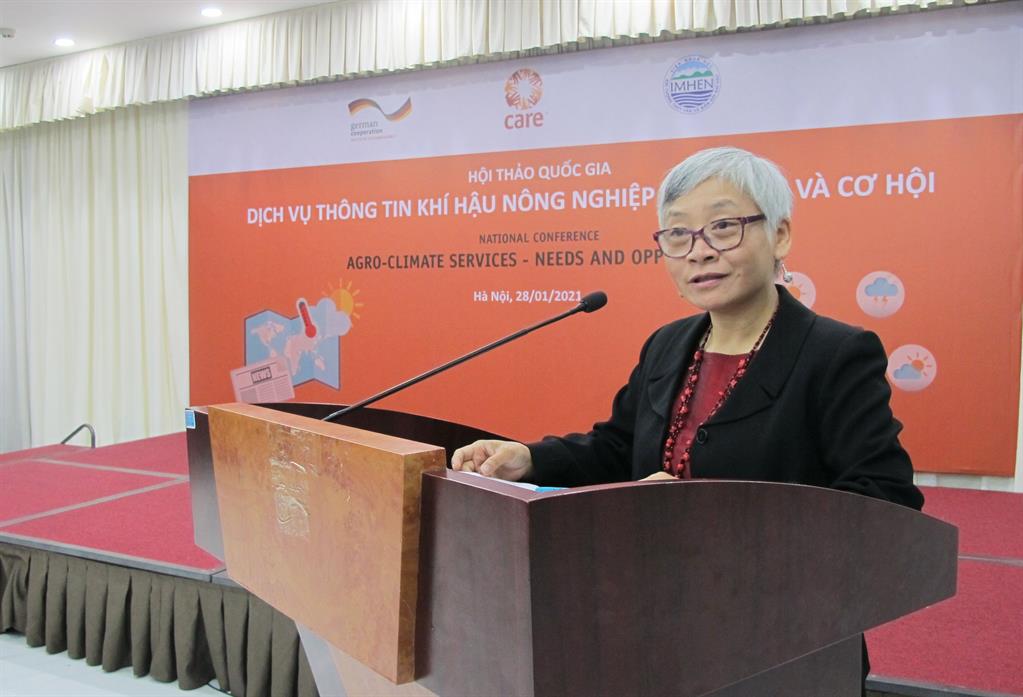 Bà Vũ Minh Hải, Quản lý Chương trình Dịch vụ khí hậu nông nghiệp của CARE, đồng Chủ trì Hội thảo, cho biết “CARE và các tổ chức quốc tế đã triển khai thực hiện nhiều dự án dịch vụ khí hậu nông nghiệp tới người sử dụng cuối cùng là cấp tỉnh-huyện và cộng đồng ở Việt Nam”, “Các dự án đã phát huy hiệu quả rõ ràng khi cán bộ ở địa phương và người dân được hỗ trợ cung cấp thông tin khí hậu phục vụ sản xuất nông nghiệp”, “Hội thảo là cơ hội để các nhà nghiên cứu, người cung cấp dịch vụ khí hậu, người sử dụng thông tin khí hậu các cấp,… cùng trao đổi để xác định được: (1) Nhu cầu sử dụng thông tin khí hậu trong sản xuất nông nghiệp; (2) Khả năng đáp ứng của Ngành KTTV”. Bà Hải cũng cho rằng “Hội thảo cũng là cơ hội để cho chúng ta thấy rõ những lợi ích của dịch vụ khí hậu, lợi ích của việc xây dựng Khung dịch vụ khí hậu quốc gia -NFCS”. Đồng quan điểm với Viện trưởng Viện Khoa học KTTVBĐKH về tầm quan trọng của “Khung dịch vụ khí hậu quốc gia”, Bà Vũ Minh Hải nhấn mạnh: Hội thảo tạo cơ hội cho các bên liên quan, các tổ chức quốc tế, các đối tác và đại diện cho người dân chia sẻ, trao đổi về nhu cầu sử dụng, cũng như phát triển dịch vụ khí hậu ở Việt Nam. Đây cũng là dịp để đưa ra các đề xuất cụ thể cho tiến trình phát triển khung Dịch vụ khí hậu cho Việt Nam. Từ đó xây dựng được các khuyến cáo, chuyển tải chính xác, dễ hiểu đến người sử dụng cuối cùng, nhất là người dân thuộc nhóm dân tộc ít người ở vùng sâu, vùng xa để họ có thể làm theo.