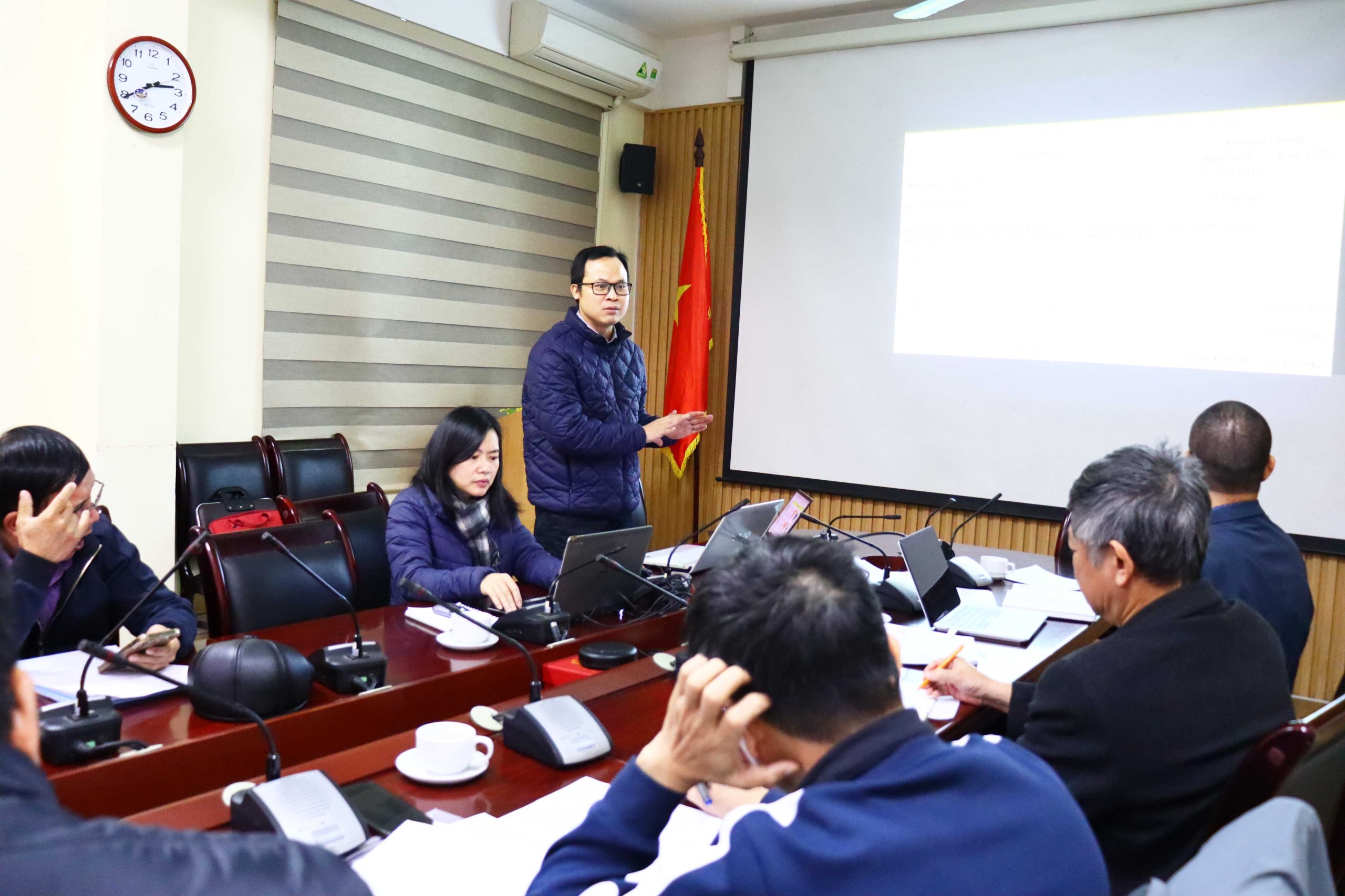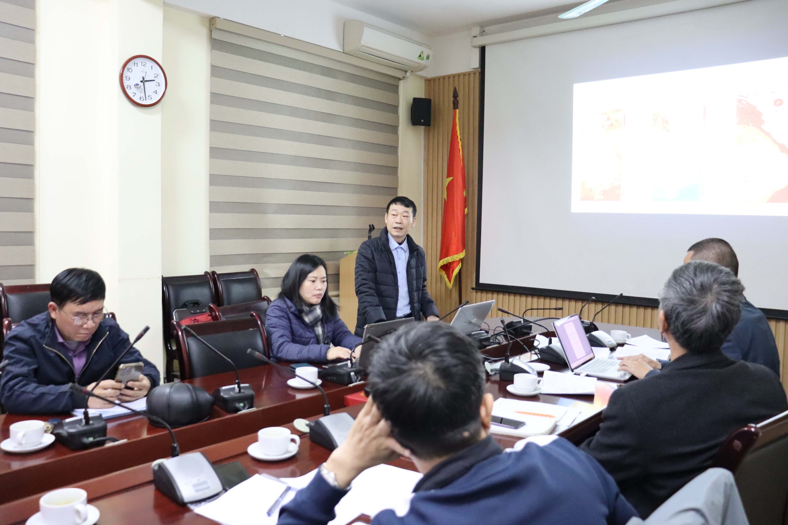 TS. Nguyễn Đăng Mậu trình bày nội dung thực hiện dự án năm 2024 của Trung tâm Nghiên cứu Khí tượng Nông nghiệp
