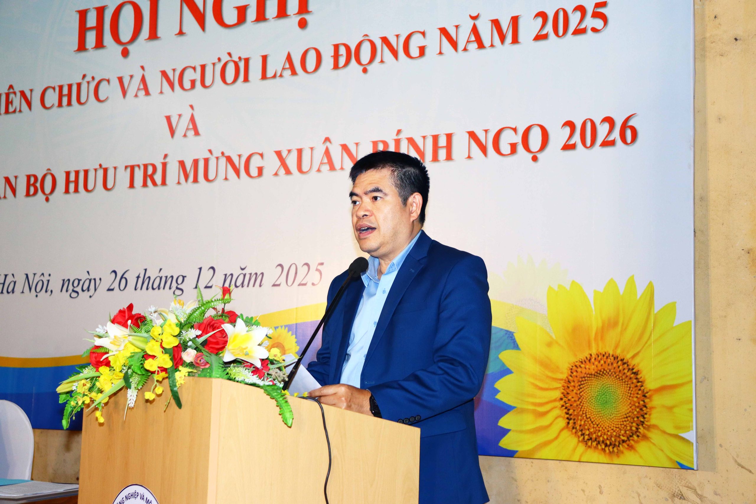 Phát biểu tại Hội nghị, đại diện Công đoàn Nông nghiệp và Môi trường Việt Nam ghi nhận những kết quả đạt được trong hoạt động công đoàn của Viện năm 2025, đồng thời định hướng một số nội dung trọng tâm cần tiếp tục triển khai trong thời gian tới, nhất là trong bối cảnh tổ chức công đoàn và đơn vị có nhiều thay đổi.