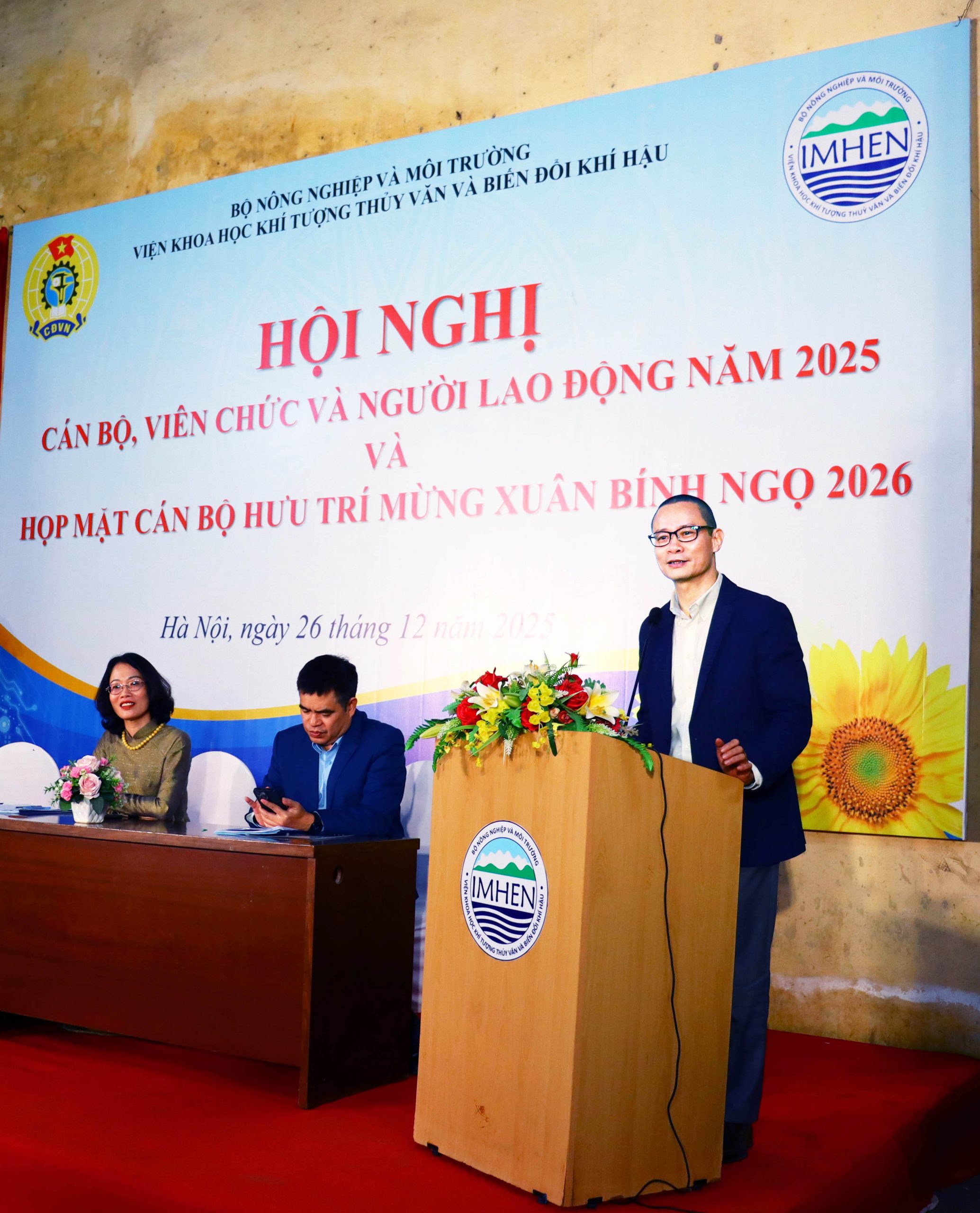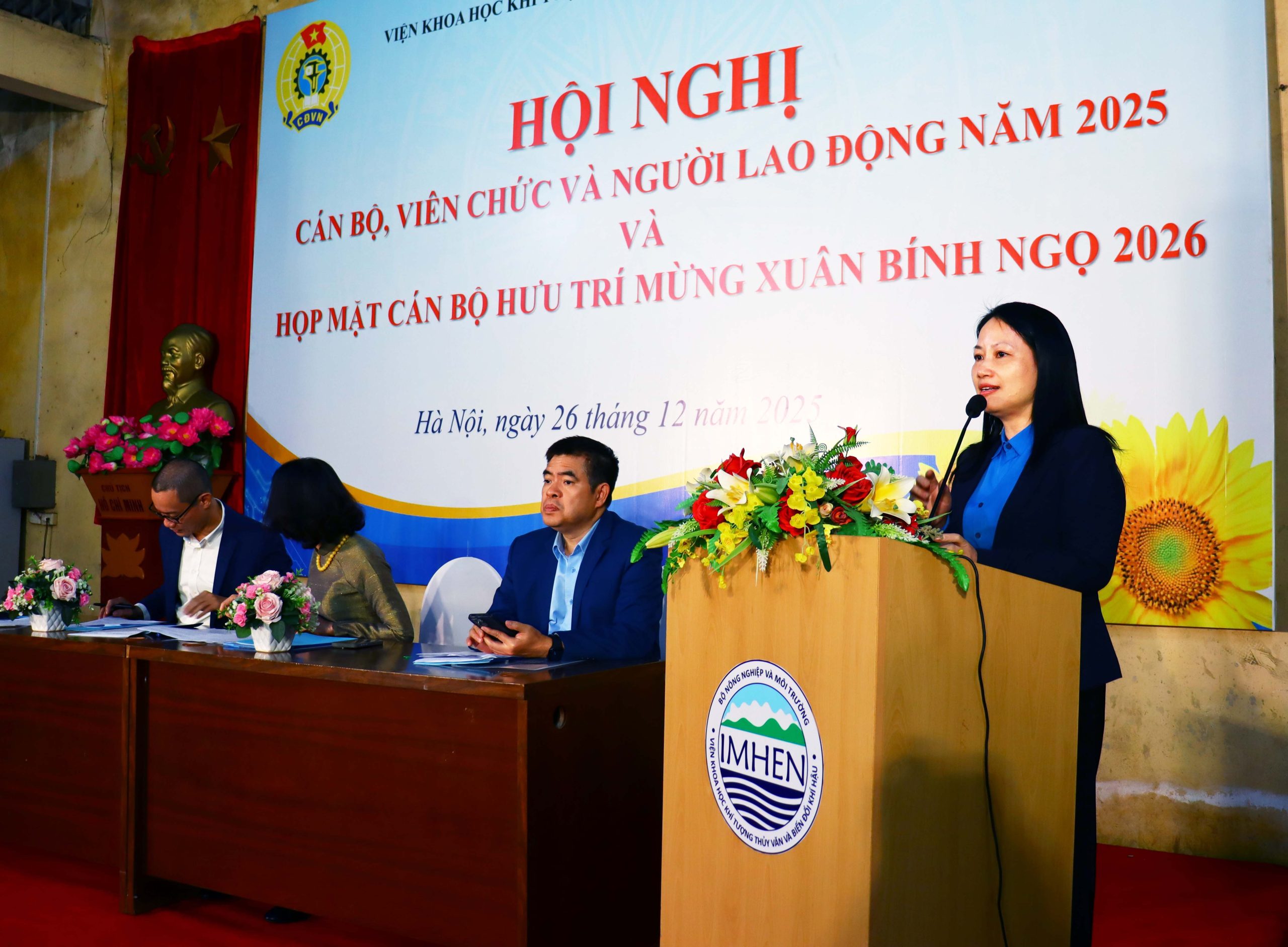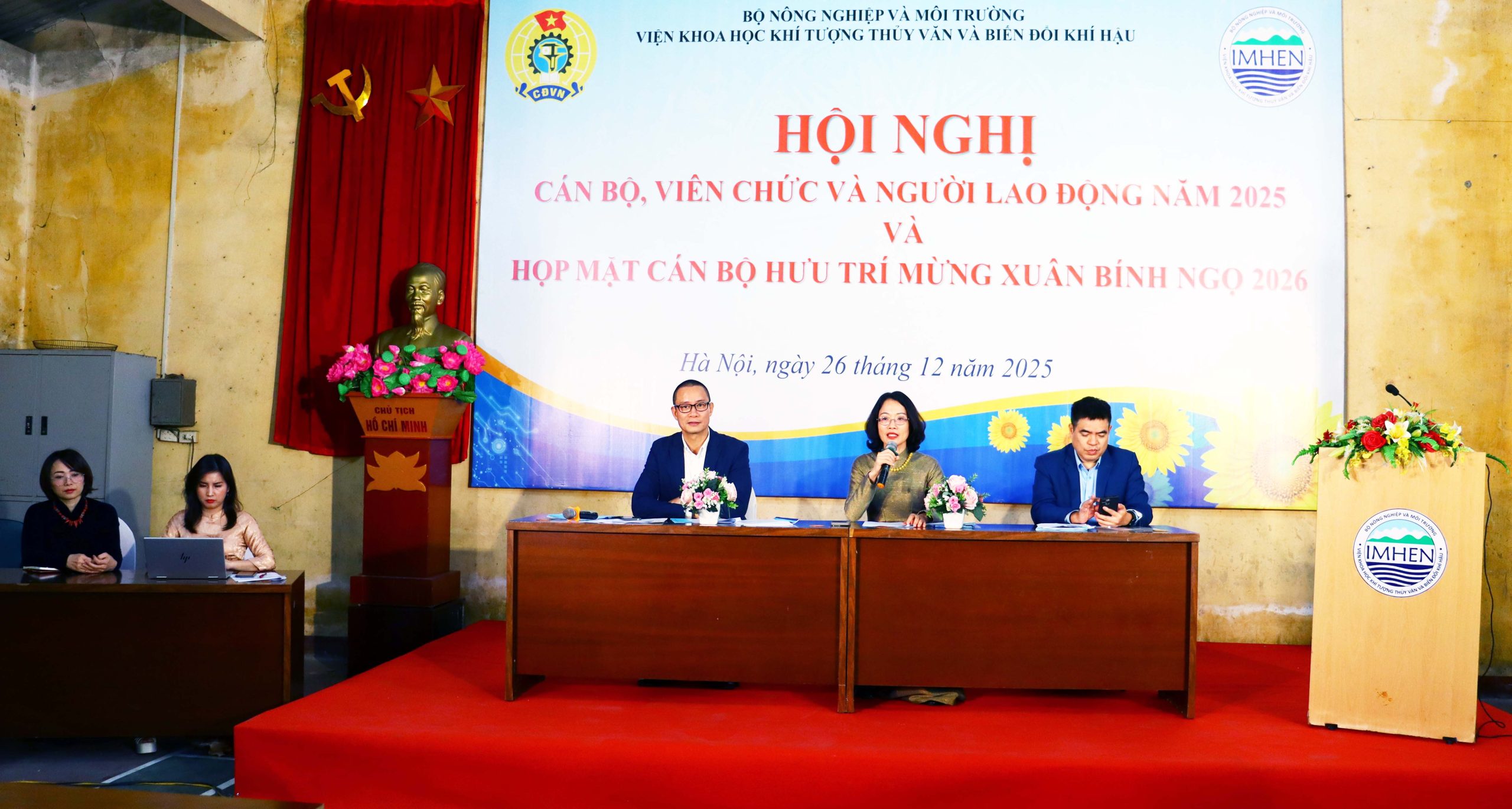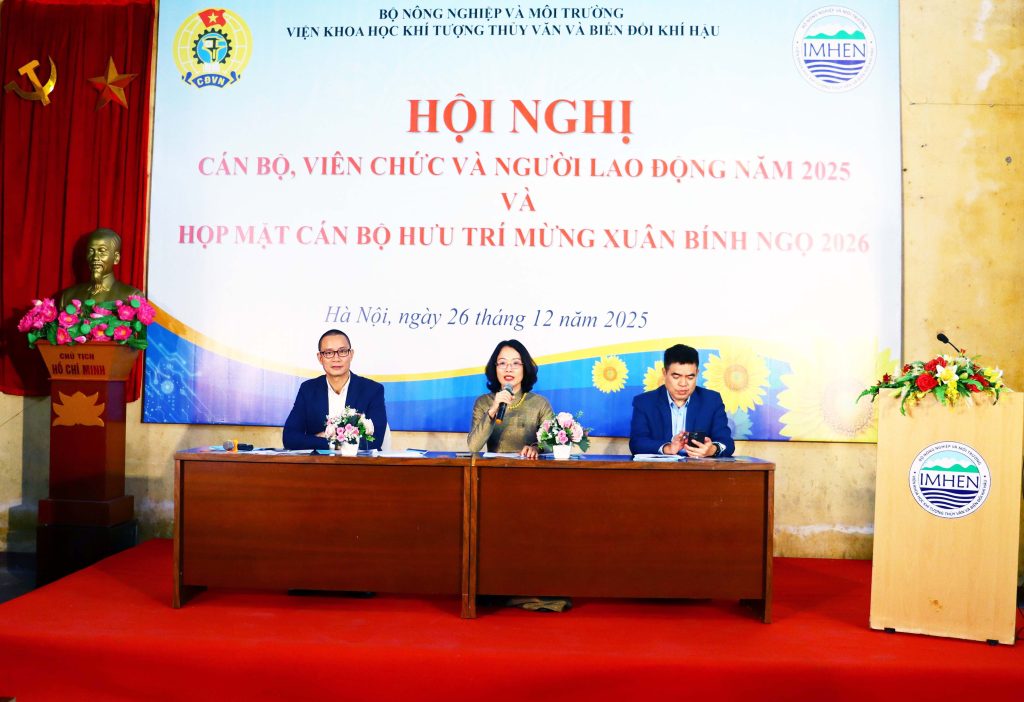 Thực hiện quy định của pháp luật về thực hiện dân chủ ở cơ sở và hướng dẫn của tổ chức Công đoàn, ngày 26/12/2025, Viện Khoa học Khí tượng Thủy văn và Biến đổi khí hậu (KTTVBĐKH) đã tổ chức Hội nghị Cán bộ, viên chức, người lao động nhằm đánh giá kết quả thực hiện nhiệm vụ năm 2025, đồng thời thảo luận và thống nhất phương hướng, nhiệm vụ công tác năm 2026.