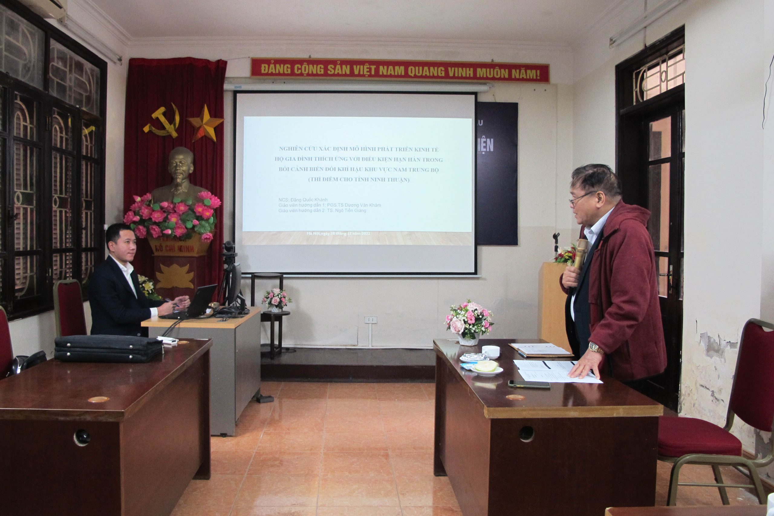 Buổi hội thảo của NCS. Đặng Quốc Khánh diễn ra dưới sự chủ trì của PGS.TS. Nguyễn Thế Chinh (Viện Khoa học Khí tượng Thủy văn và Biến đổi khí hậu) với sự tham gia của các chuyên gia về lĩnh vực biến đổi khí hậu thuộc Bộ Tài nguyên và Môi trường.