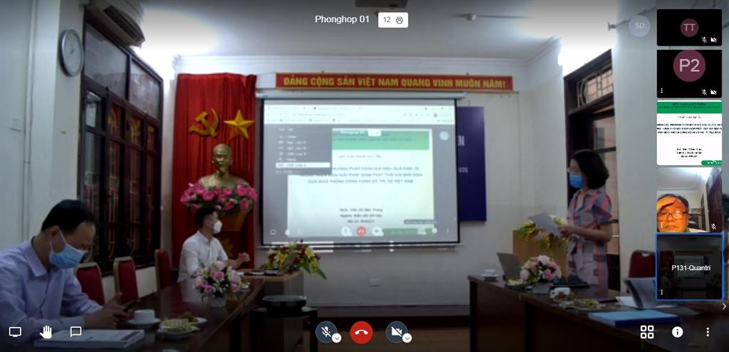 Chiều ngày 22/7/2021 Viện Khoa học Khí tượng Thủy văn và Biến đổi khí hậu tổ chức Hội thảo khoa học luận án tiến sĩ của nghiên cứu sinh (NCS) Trần Đỗ Bảo Trung với đề tài luận án: “Nghiên cứu phương pháp đánh giá hiệu quả kinh tế trong triển khai giải pháp giảm phát thải khí nhà kính của giao thông công cộng đô thị tại Việt Nam”, ngành: Biến đổi khí hậu; Mã số: 9440221.