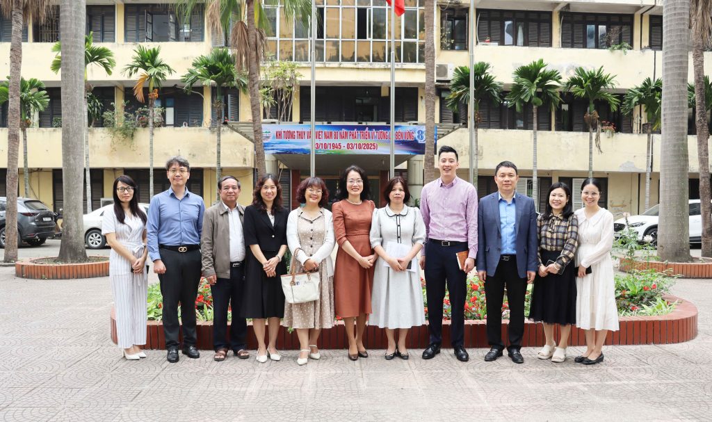 Các thành viên UBQG IHP Việt Nam chụp ảnh lưu niệm tại sân Viện KTTVBĐKH