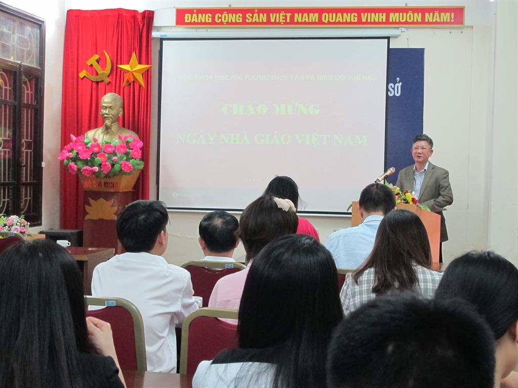Phát biểu tại chương trình kỷ niệm ngày Nhà giáo Việt Nam 20/11, PGS.TS. Nguyễn Văn Thắng, Viện trưởng Viện Khoa học KTTV&BĐKH vui mừng tự hào về truyền thống đào tạo của Viện đã cho ra đời các thế hệ nghiên cứu sinh đã và đang cống hiến hết mình cho ngành KTTV&BĐKH nói riêng và sự nghiệp phát triển kinh tế-xã hội nói chung của đất nước. PGS.TS. Nguyễn Văn Thắng nhấn mạnh rằng: Để Viện có được kết quả đào tạo như ngày hôm nay là nhờ sự đóng góp công lao to lớn của các thầy, cô giáo đã và đang tham gia đào tạo trình độ tiến sĩ tại Viện.