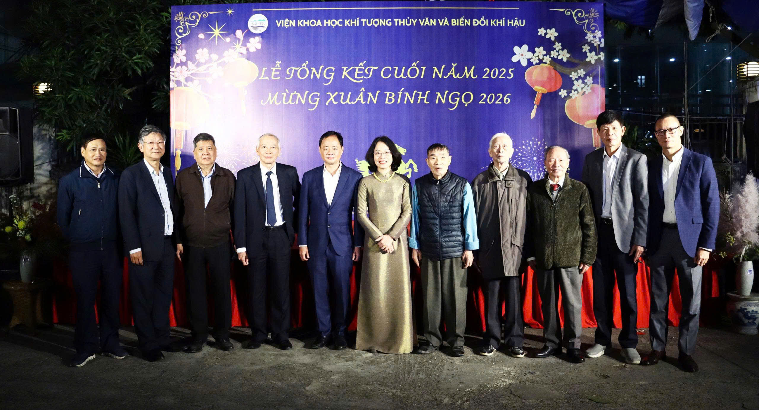 Ông Trần Hồng Thái chụp ảnh cùng các nguyên lãnh đạo, lãnh đạo Viện Khoa học Khí tượng Thủy văn, Môi trường và Biển
