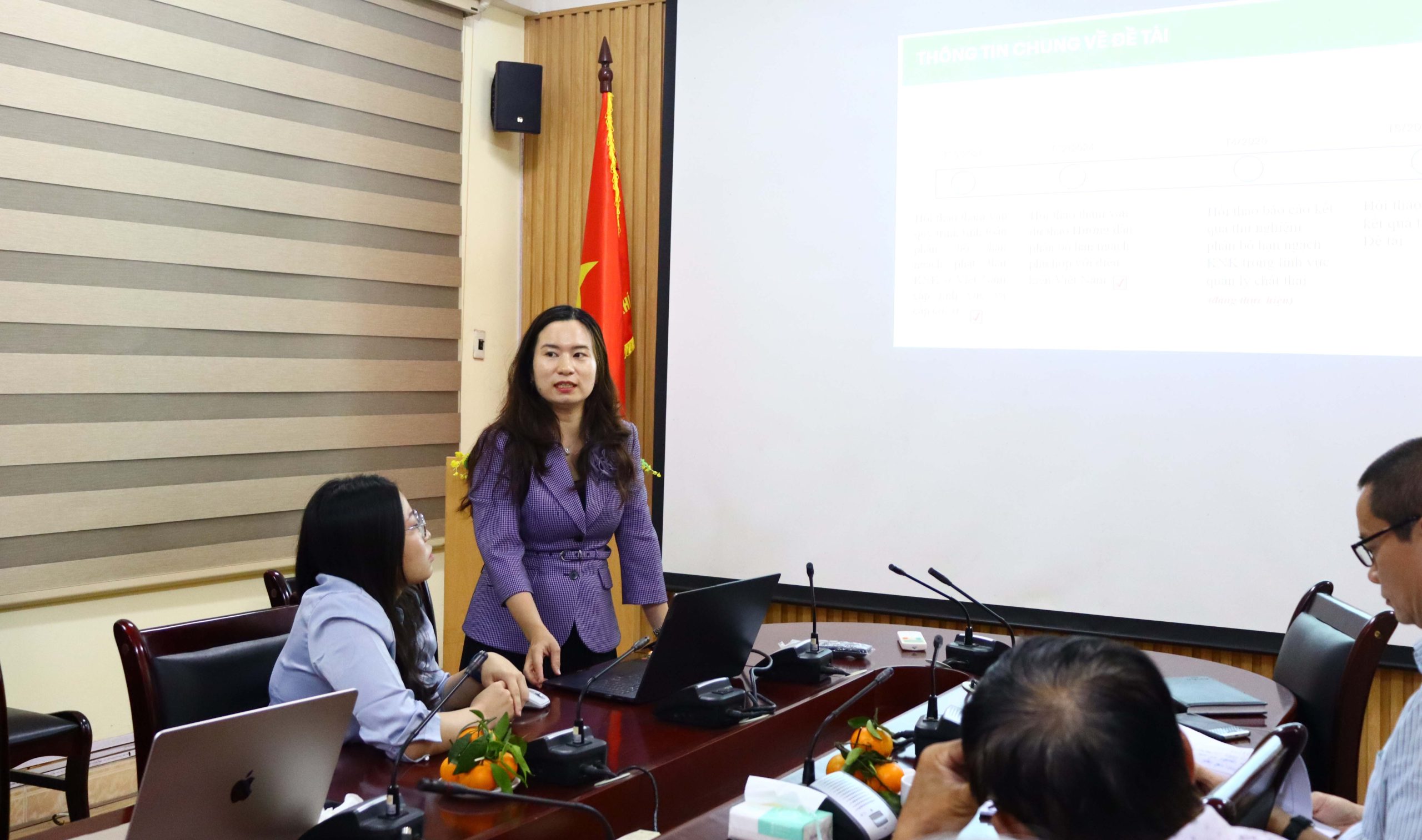 ThS. Ngô Thị Vân Anh trình bày kết quả phân bổ hạn ngạch phát thải cấp lĩnh vực chất thải