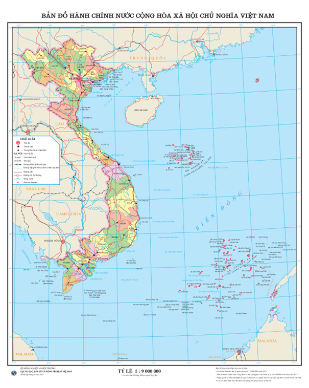 Mẫu trình bày bản đồ chuẩn biên giới quốc gia tỷ lệ 1:9.000.000