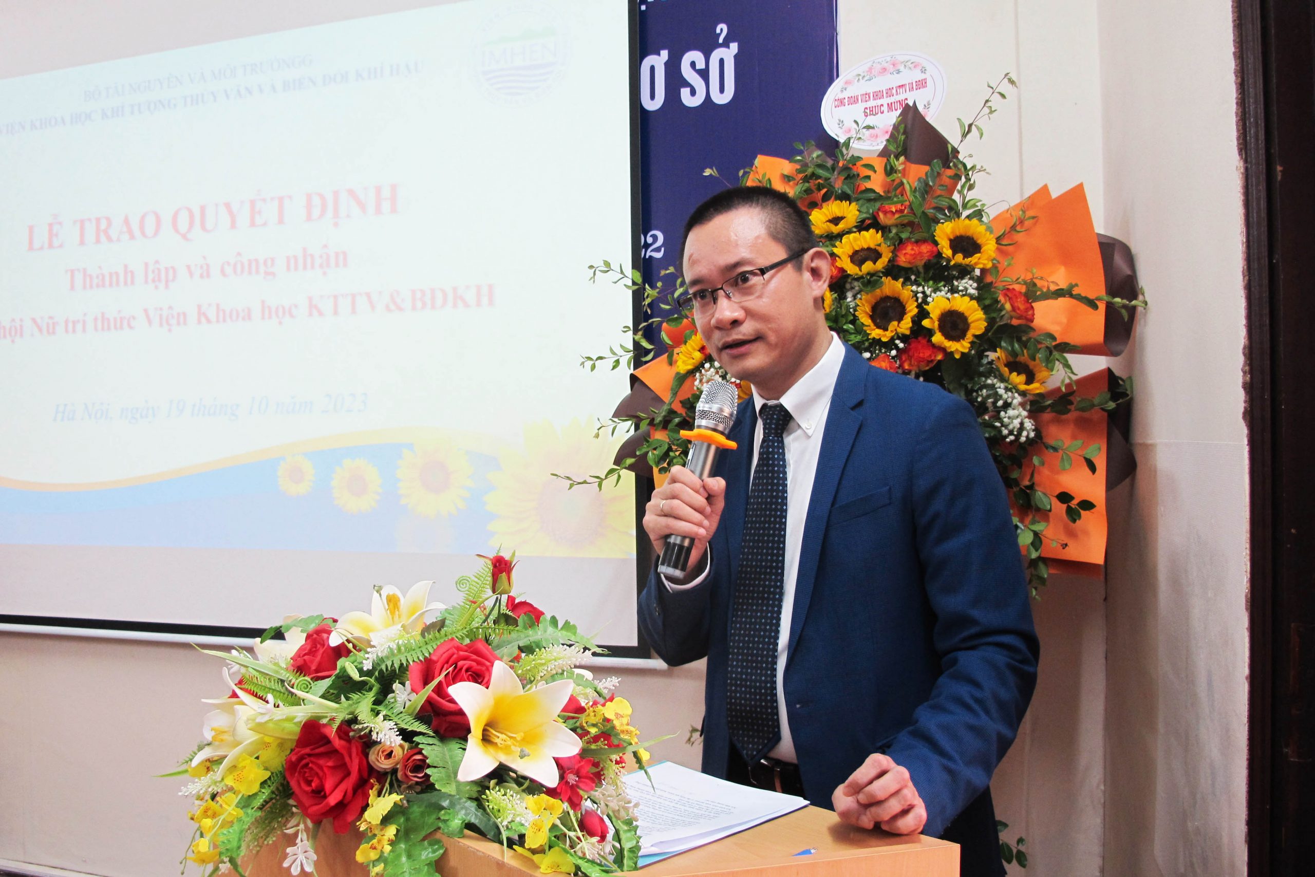 TS. Lê Ngọc Cầu (Phó Viện trưởng, Chủ tịch Công đoàn Viện KTTVBĐKH) khẳng định việc thành lập Chi hội Nữ trí thức Viện KTTVBĐKH là một sự kiện hết sức có ý nghĩa đối với cán bộ nữ trí thức nói riêng và toàn thể cán bộ của Viện nói chung. Theo ông Cầu, trong quá trình 45 năm phát triển, đội ngũ nữ trí thức của Viện là những người được đào tạo bài bản trong và ngoài nước có kiến thức sâu rộng trong lĩnh vực nghiên cứu chuyên ngành hẹp với những công trình khoa học nghiên cứu cơ bản và nghiên cứu ứng dụng được ghi nhận trong các tạp chí khoa học có uy tín. Đặc biệt, một số nghiên cứu đã được ứng dụng trong thực tiễn góp phần nâng cao hiệu quả công tác quản lý nhà nước về KTTV, BĐKH, môi trường và năng lượng.