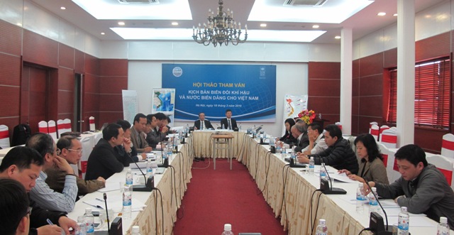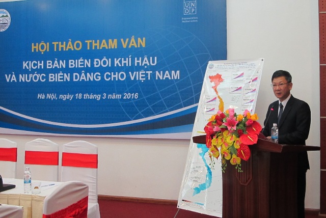 Sáng 18/3/2016, tại Hà Nội, Viện Khoa học Khí tượng Thủy văn và Biến đổi khí hậu (Viện KTTVBĐKH) phối hợp cùng Chương trình Phát triển Liên hợp quốc UNDP tổ chức hội thảo “Tham vấn dự thảo kịch bản biến đổi khí hậu và nước biển dâng cho Việt Nam”.