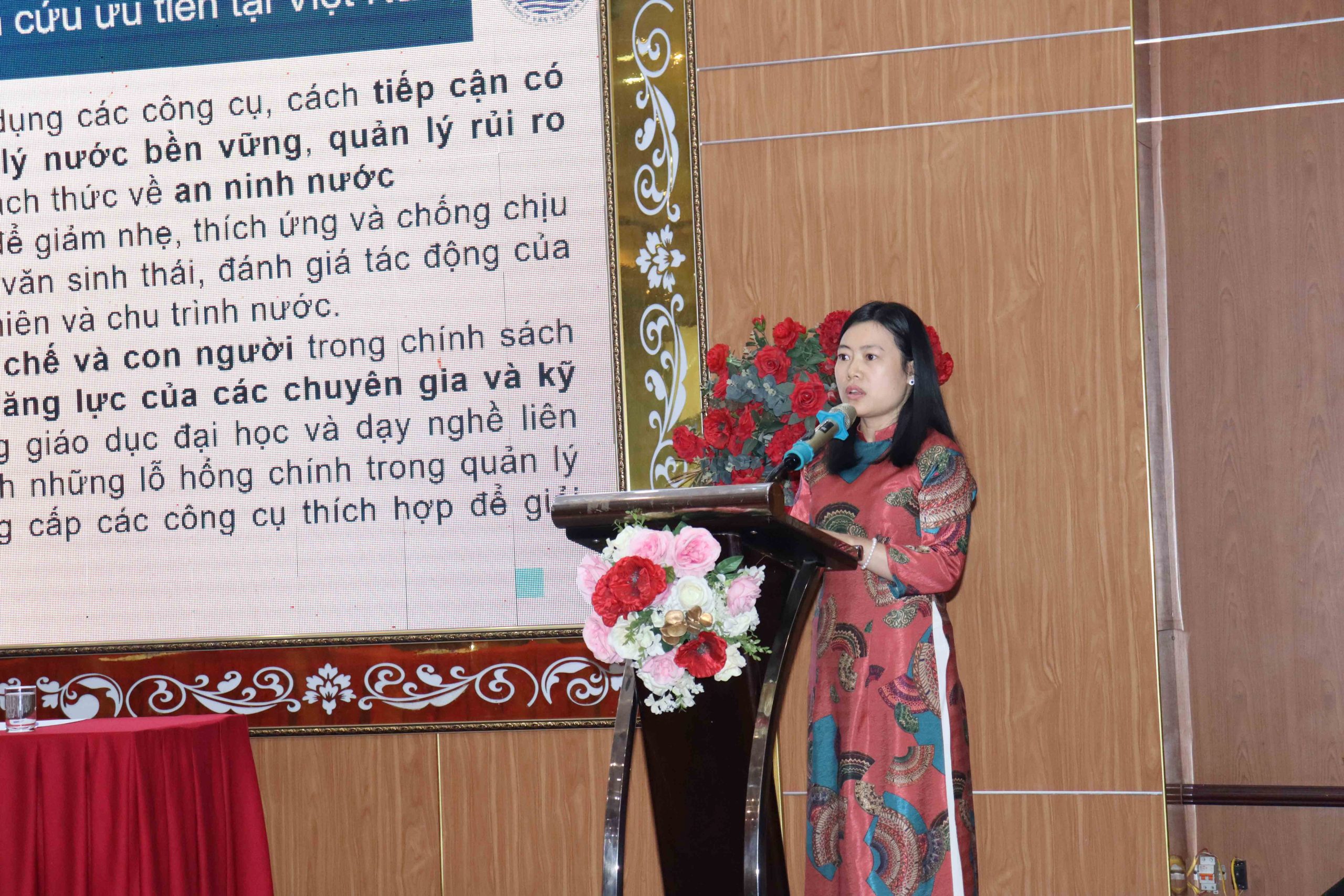 Phát biểu khai mạc hội thảo, PGS.TS. Phạm Thị Thanh Ngà (Viện trưởng Viện KTTVBĐKH) cho biết, đảm bảo an ninh nguồn nước quốc gia, bảo đảm số lượng, chất lượng nước phục vụ dân sinh trong mọi tình huống, đáp ứng nhu cầu sử dụng nước cho các hoạt động phát triển kinh tế – xã hội, quốc phòng, an ninh, môi trường và giảm thiểu rủi ro, tác hại từ các thảm họa do con người và thiên nhiên gây ra liên quan đến nước đã được thể hiện xuyên suốt trong Luật tài nguyên nước.