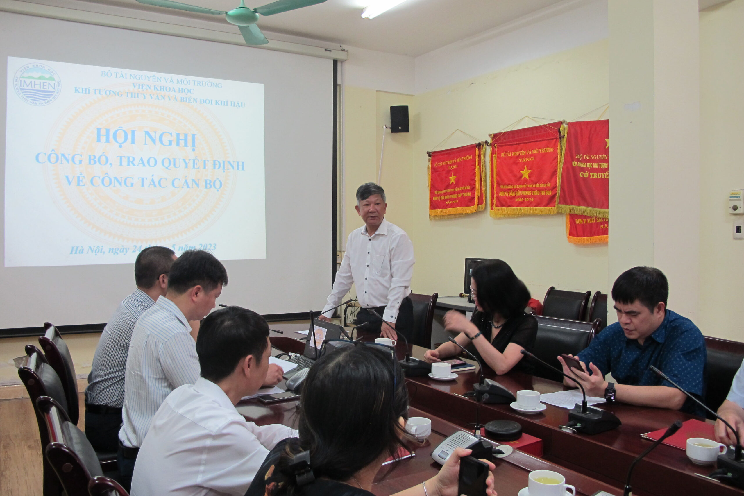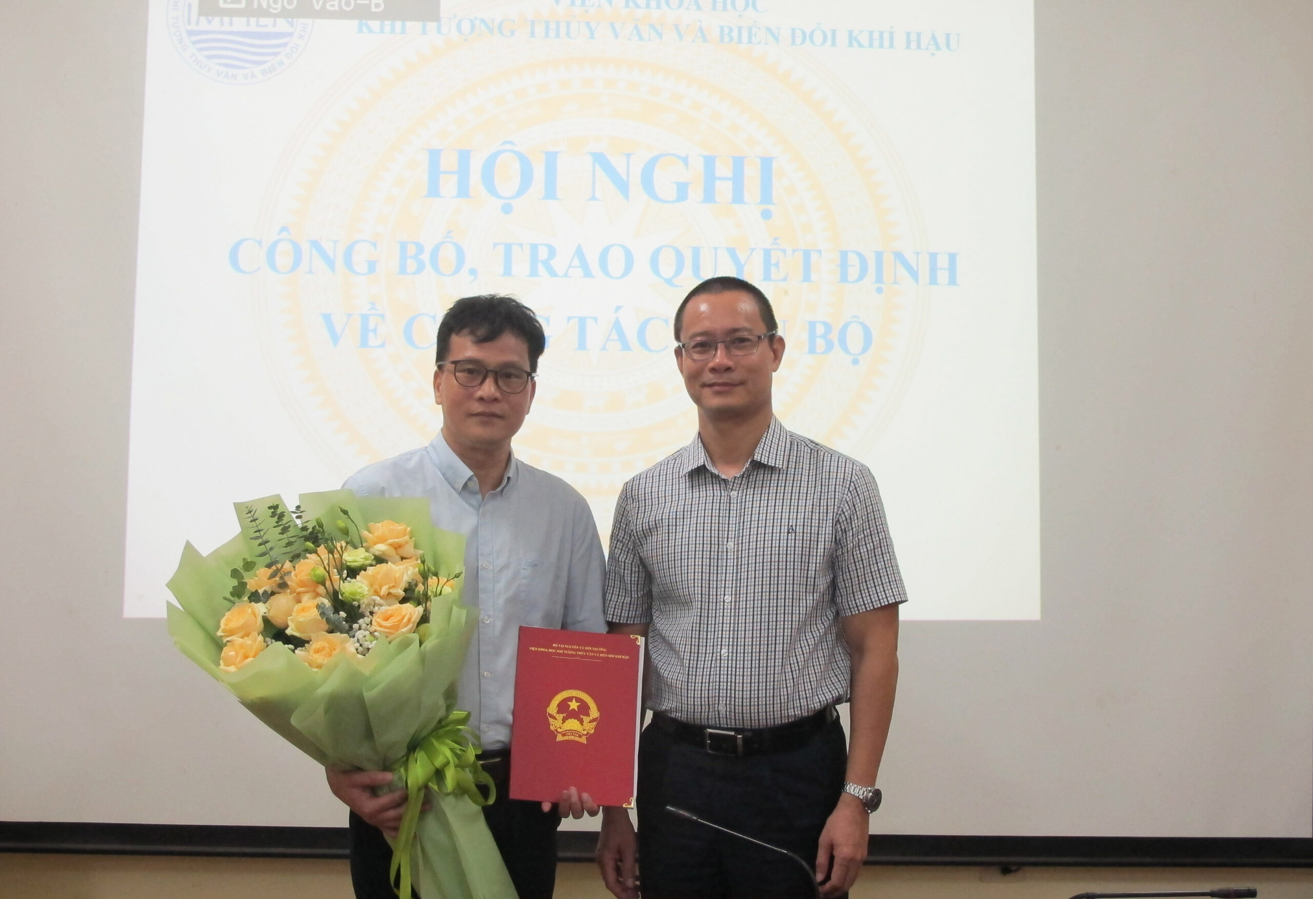 Tại buổi lễ, TS. Nguyễn Quốc Khánh, Phó Viện trưởng Viện KTTV&BĐKH đã trao Quyết định điều động, bổ nhiệm có thời hạn ông Doãn Hà Phong, Trưởng phòng Nghiên cứu Công nghệ Khí tượng Thủy văn và Biến đổi khí hậu giữ chức vụ Giám đốc Trung tâm Nghiên cứu Môi trường, Viện Khoa học Khí tượng Thủy văn và Biến đổi khí hậu.