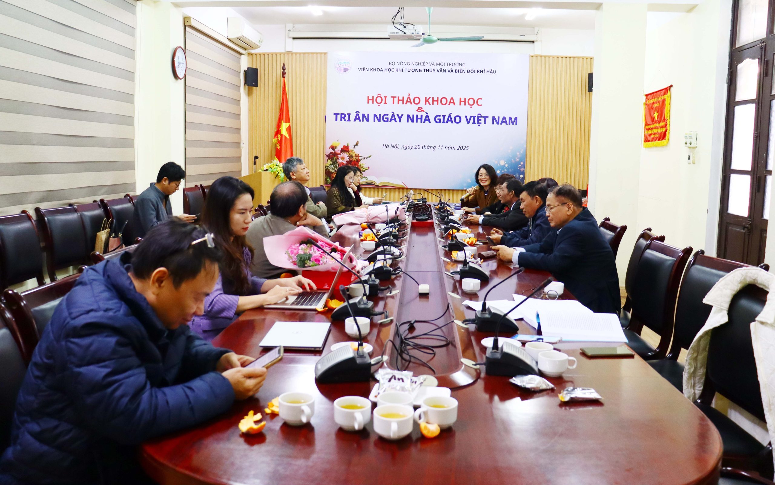 Nhân kỷ niệm 43 năm ngày Nhà giáo Việt Nam 20/11, sáng ngày 20/11/2025, Viện Khoa học Khí tượng Thủy văn và Biến đổi khí hậu (KTTVBĐKH) long trọng tổ chức Hội thảo khoa học và tri ân Ngày Nhà giáo Việt Nam 20/11 với sự tham dự của các thầy, cô giáo, các nghiên cứu sinh đã và đang học tập, nghiên cứu tại Viện.